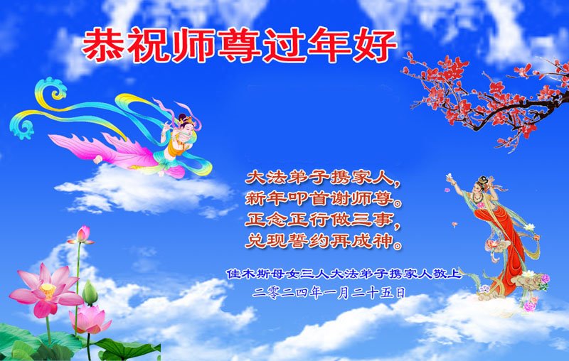 辞旧迎新之际,我们全家族七名大法弟子及二十多位家人向伟大慈悲的师尊跪拜新年:师尊新年好!师尊辛苦了!感恩师尊慈悲救度!