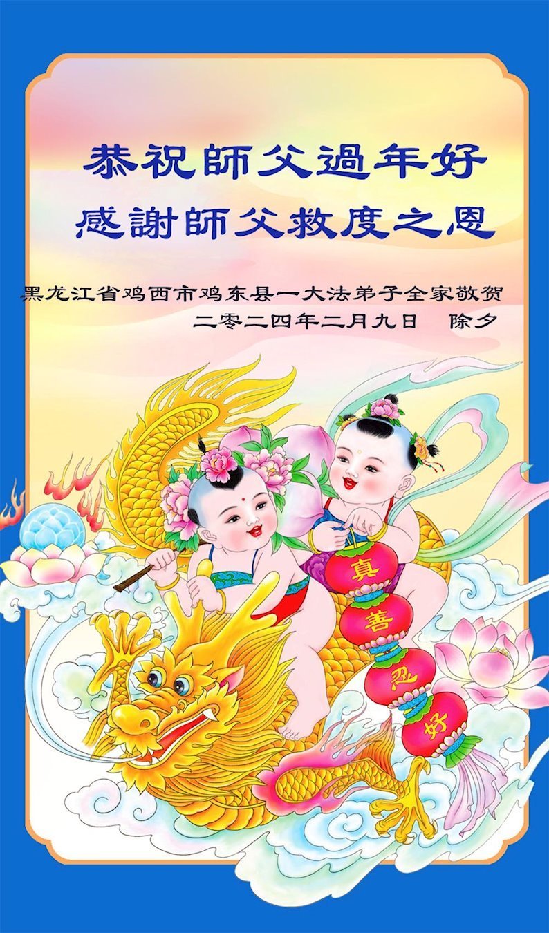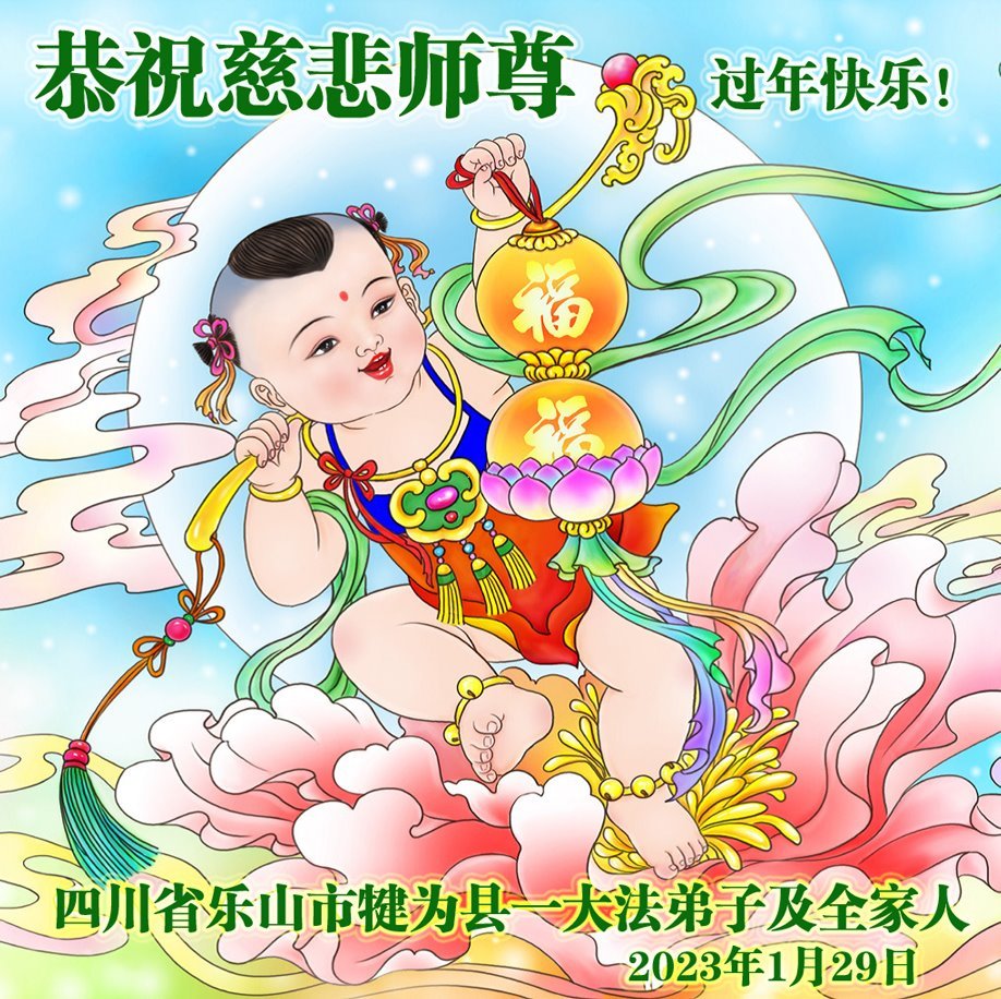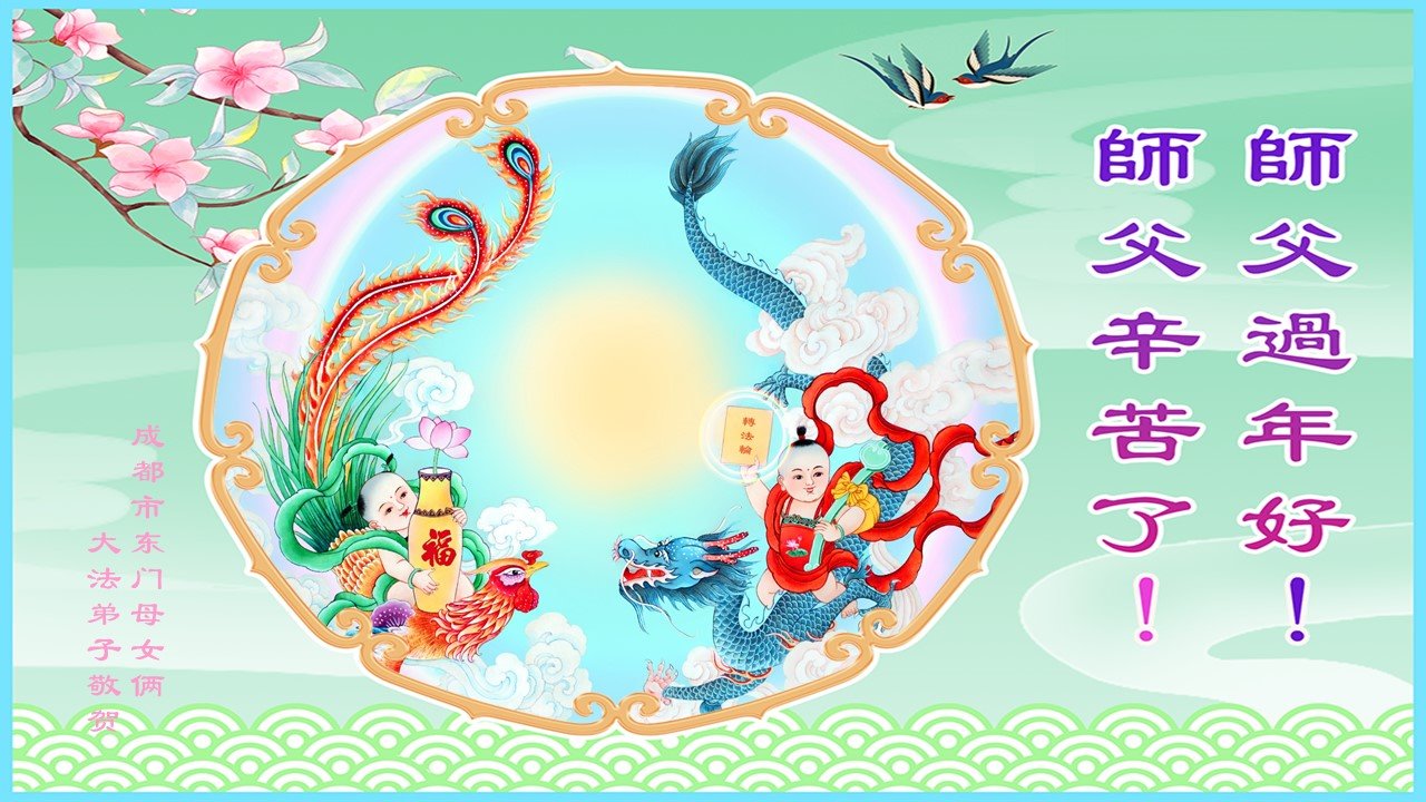 ──山东烟台牟平区一大法弟子女儿恭祝大法师父过年好!