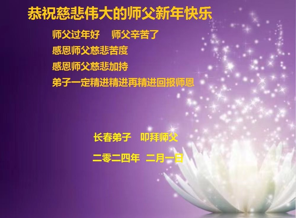 在二零二四年中国新年到来之际,弟子以最虔诚的心给慈悲的师父拜年:师父过年好!师父辛苦了!