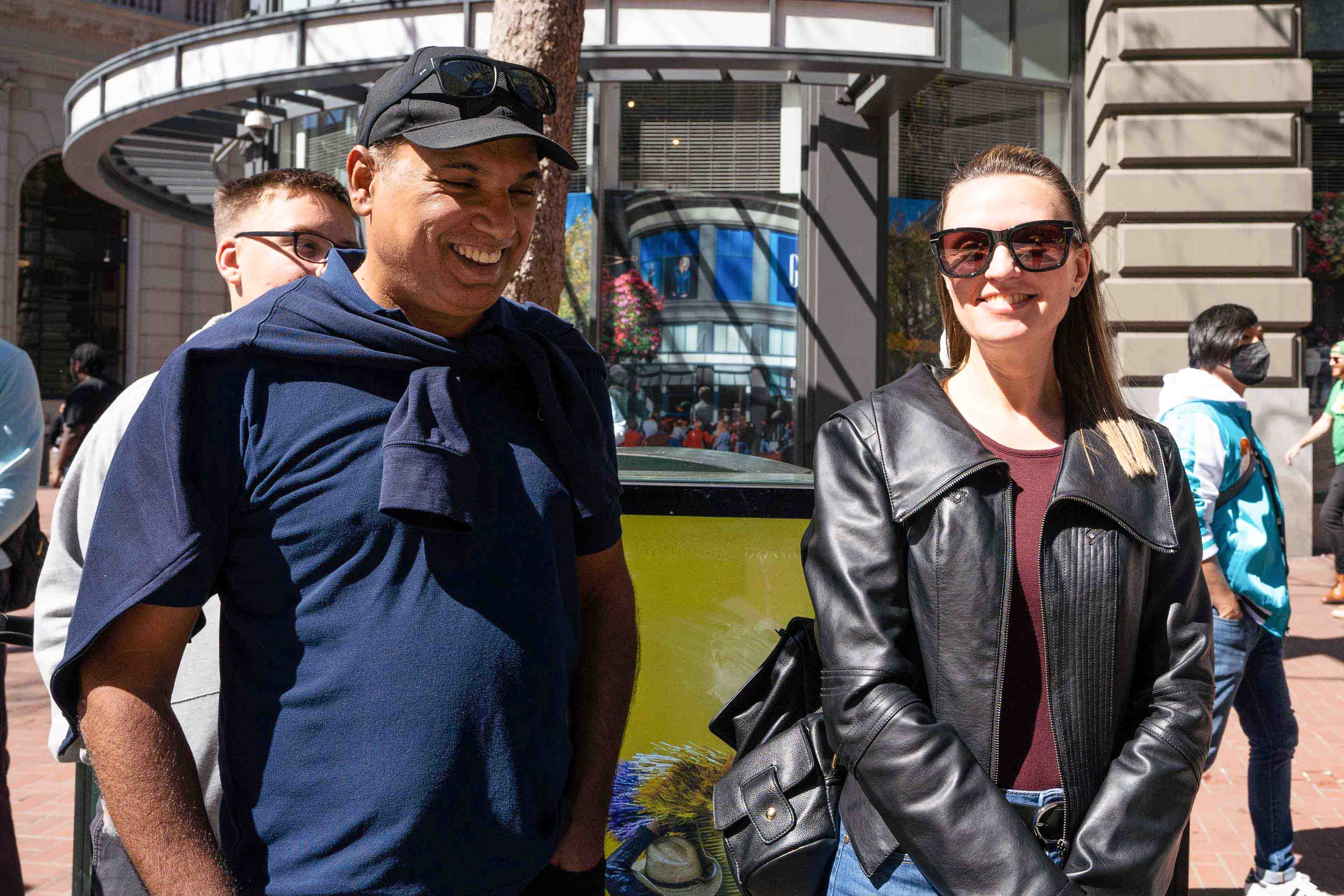 印度裔美国人Narem和他的乌克兰裔太太Athana很喜欢法轮功学员的队伍。Athana说,“我喜欢这支队伍,非常美妙。”