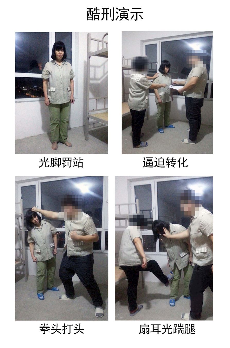 二零零三年十一月末,马艳华被逼坐板一个月,从凌晨四点坐到晚上十一点,坐在五十厘米平方的四方瓷砖上,脚不能出格,一天只让上两次厕所。
