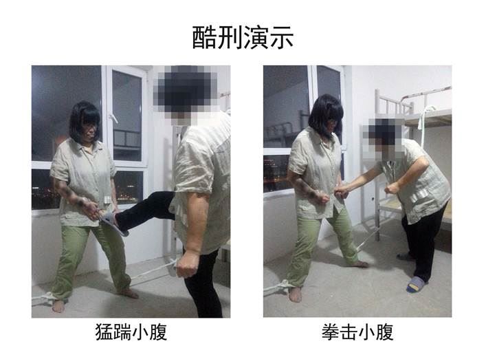 二零零二年十月末,马艳华拒绝带犯人胸牌,被狱警用警绳绑了三天三宿,不许睡觉,不许洗漱,不许坐着,吃饭、如厕也由他人帮忙。