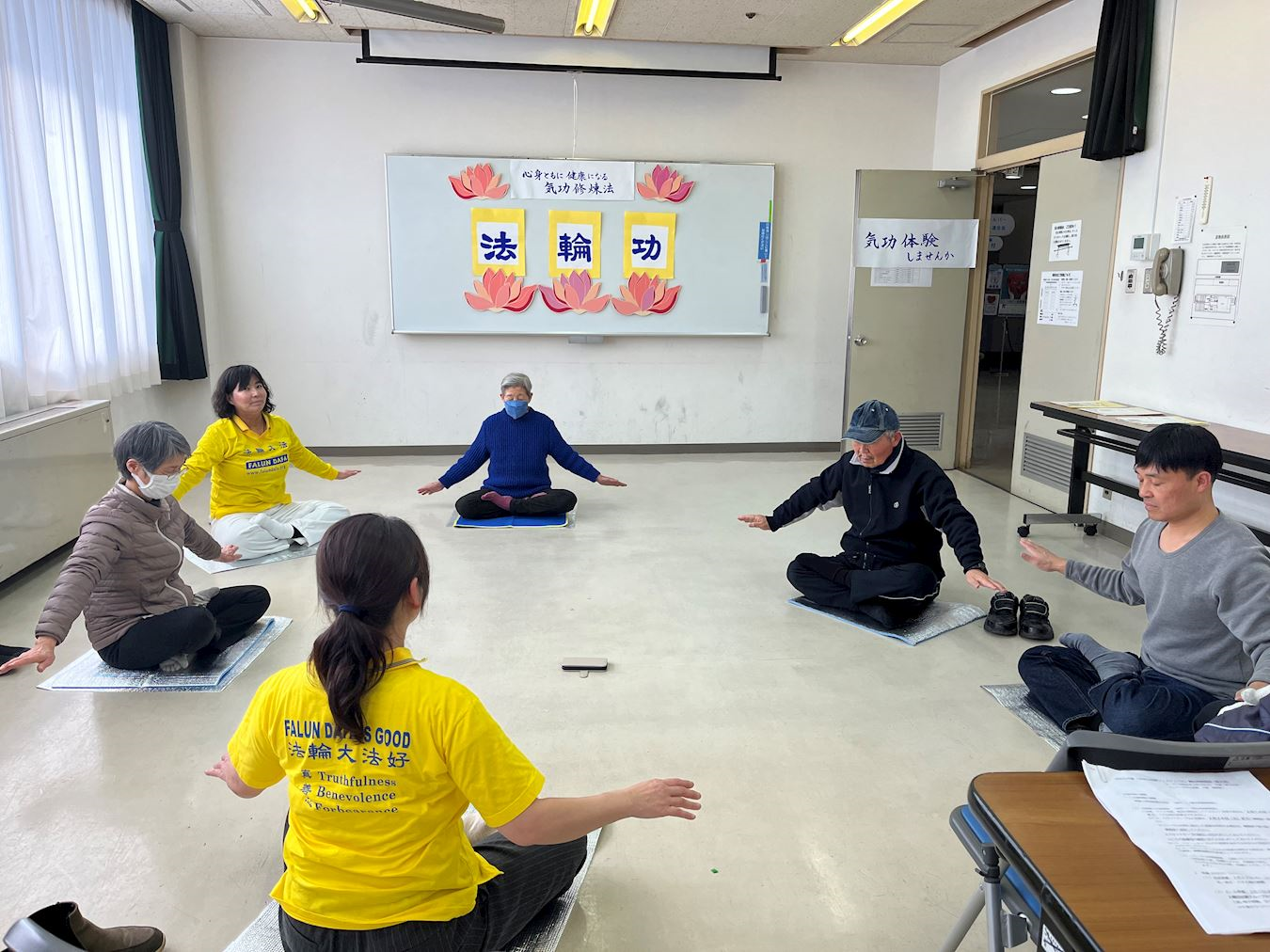 八十二岁的冲富美子女士,在炼第五套功法时,一上来就能够双盘打坐。炼完功之后她说:“学炼时感到全身发热,特别舒服,真的很开心。”她还详细询问了中央公民馆教功教室的具体时间,正在认真考虑学功一事。