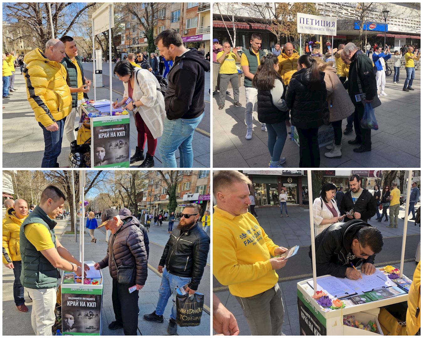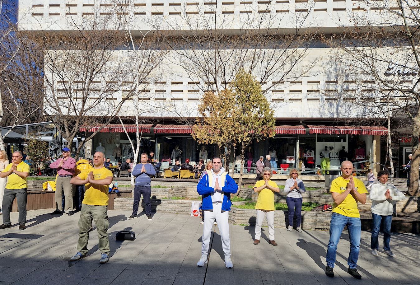 二月二十四日,法轮功学员在位于旧扎戈拉主要步行街的中央百货商店前举办信息日活动。他们有的展示五套功法,有的向路人讲述中共迫害的真相。