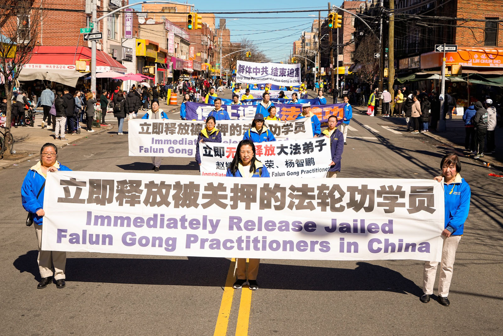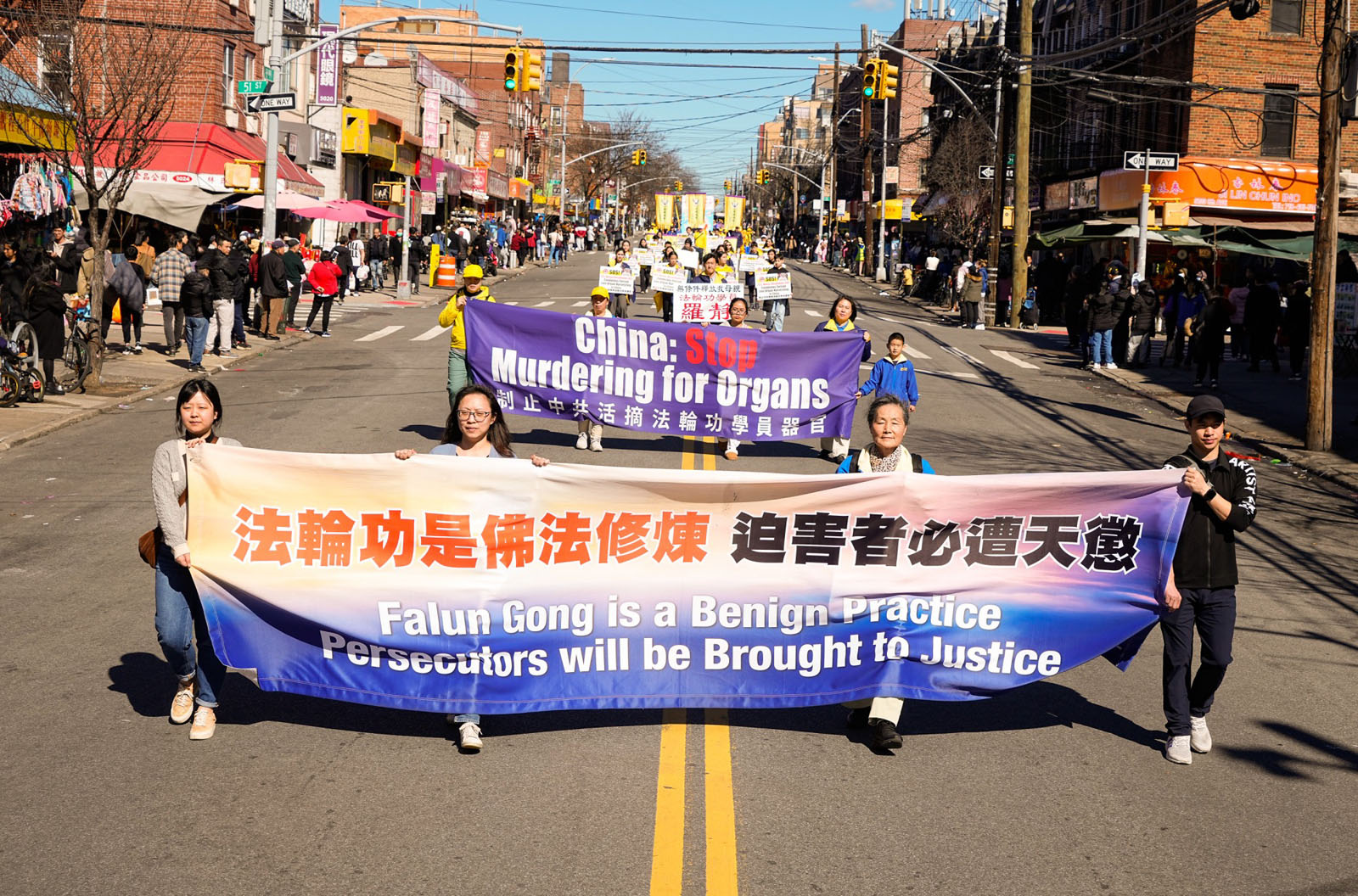 【明慧网二零二四年三月六日】(明慧记者邹德熙综合报道)二零二四年三月三日,纽约第三大华人社区——布鲁克林八大道上,近千名法轮功学员举行盛大游行。庆祝四亿两千万中国人退出中共党、团、队, 同时向当地民众传递法轮大法的福音,揭露中共对法轮功学员的残酷迫害,并呼吁制止中共所有的迫害罪行。