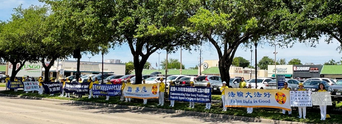 【明慧网二零二四年四月十五日】二零二四年四月十三日,来自德州休斯顿的部分法轮功学员在中国城百利大道(Bellaire Blvd)前举行集会,纪念万名法轮功学员“四·二五”和平上访二十五周年。