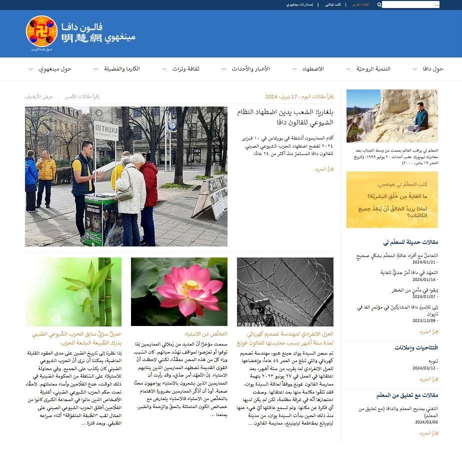 【明慧网二零二四年四月十九日】明慧网阿拉伯语网站。这是明慧网开通的第二十四个语种的译文网站。我们希望这个网站也像中文明慧一样,向阿拉伯语人士提供法轮大法和法轮大法修炼的信息。