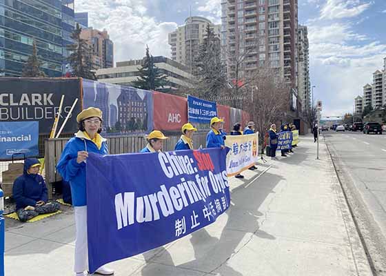 四月二十二日,加拿大卡尔加里部分法轮功学员在中领馆前举行集会,纪念法轮功学员“四·二五”和平上访二十五周年。