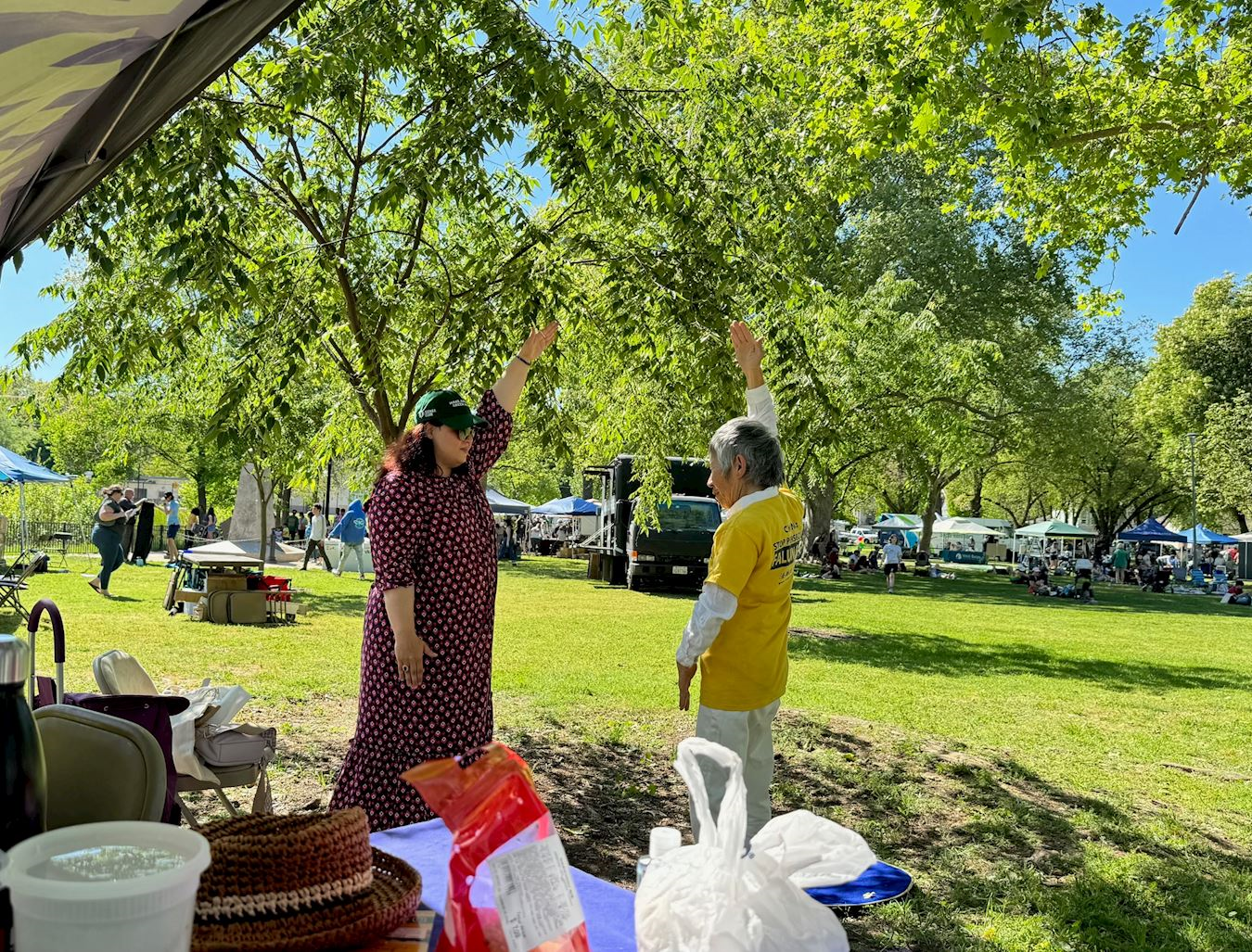 学员们的诉求得到许多人的支持,来往车辆不断鸣笛,司机伸出大拇指。还有一位大温民众赶到现场向每一位法轮功学员鞠躬致敬。
