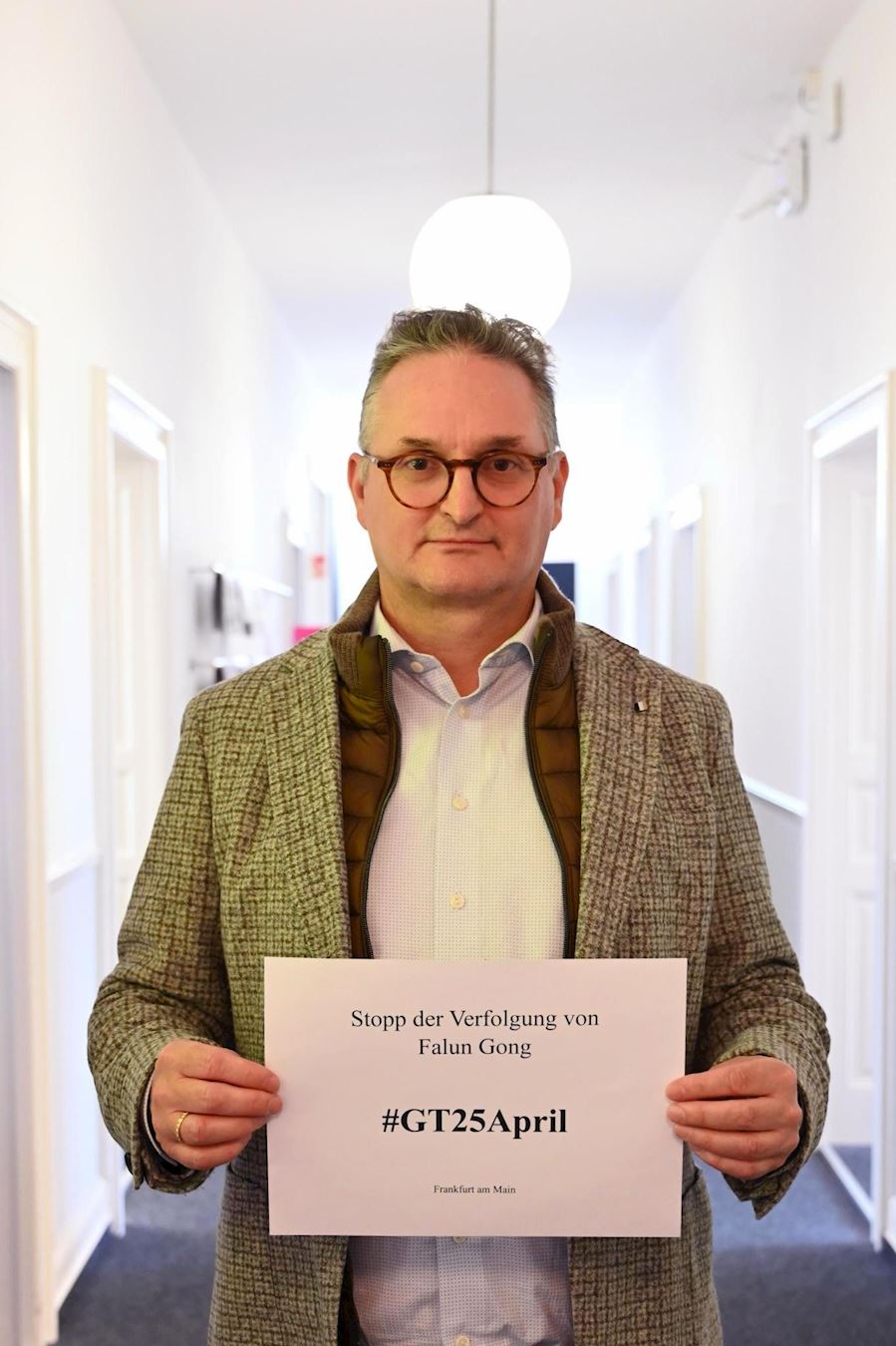 此外,黑森州州议会自民党议员奥利弗·施蒂尔伯克(Oliver Stirboeck)将他在办公室举牌支持纪念“四·二五”活动的照片,发给了当地法轮功学员。