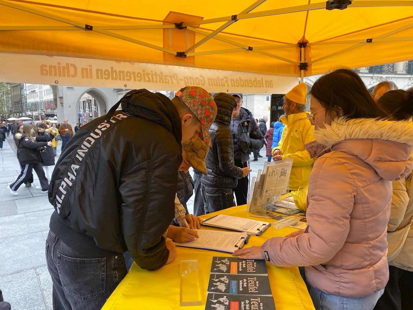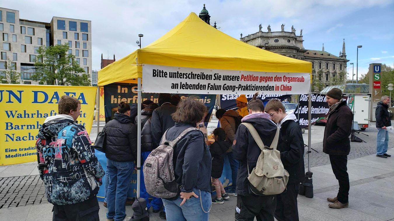 同一天,法轮功学员在巴伐利亚州首府慕尼黑卡尔斯广场(Karlsplatz)举办了信息日活动,明白真相的市民纷纷签名声援法轮功学员反迫害。当天,不少路过的留学生、大陆游客和华人选择退出中共党、团、队等相关组织。