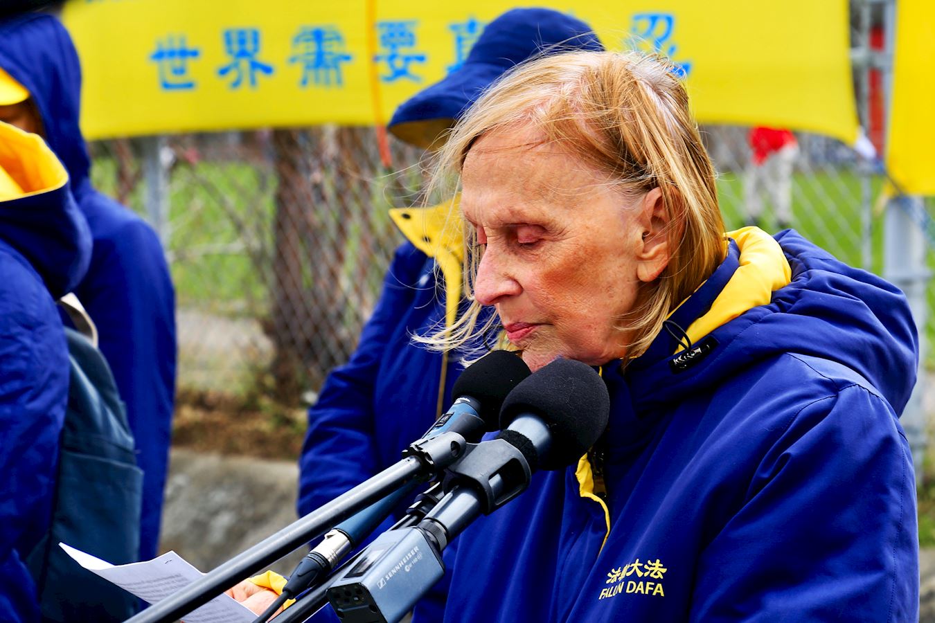 莉莉·克兰西(Lily Clancy)是美国人,从西雅图来加拿大过周末,路过艺术馆看到法轮功学员的集体炼功。这是她第一次看到法轮大法,也是第一次听到法轮功学员在中国受迫害,这让她非常震惊。