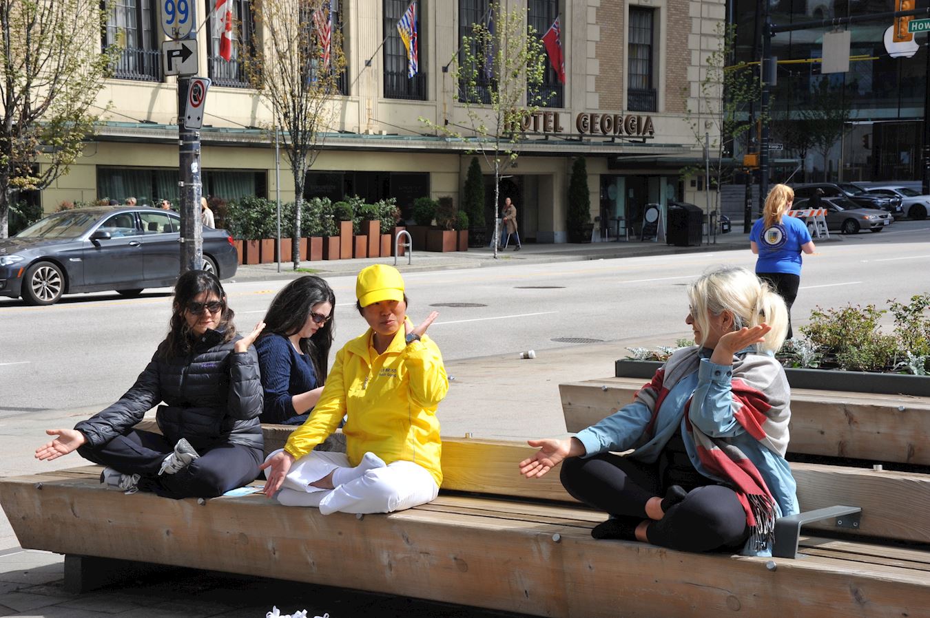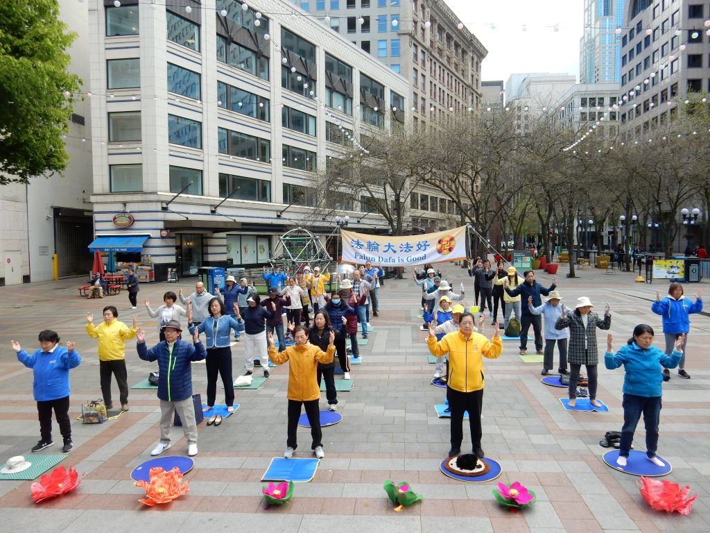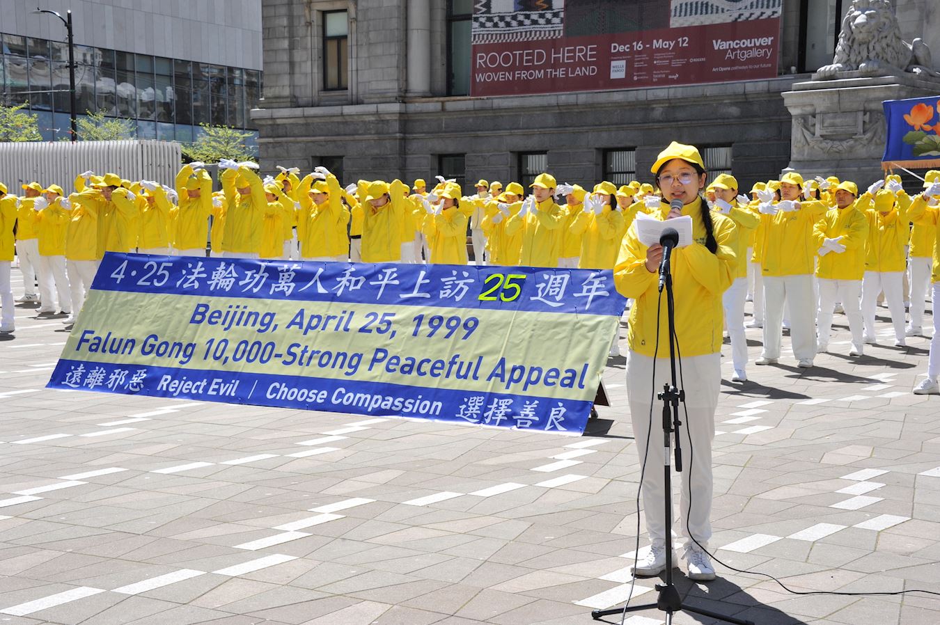 为纪念一九九九年“四·二五”和平上访二十五周年,二零二四年四月二十一日,加拿大温哥华法轮功学员在艺术馆门前炼功,场面安静、祥和,吸引了不少民众驻足观看,赞赏炼功队伍祥和宁静,对法轮功学员表示钦佩和支持。