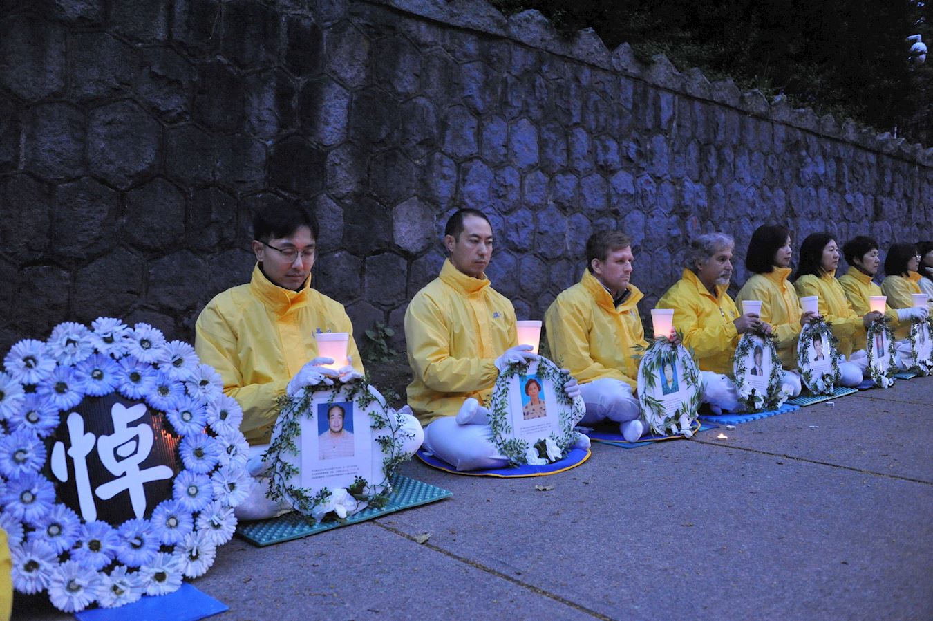 四月二十四日晚,在温哥华中领馆前,法轮功学员手持“世界需要真善忍”、“停止活摘法轮功学员器官”、“停止迫害法轮功”等中英横幅,抗议中共的反人类恶行,呼吁立即停止迫害。随后法轮功学员托起点点烛光,默默悼念被中共残酷迫害致死的法轮功学员。