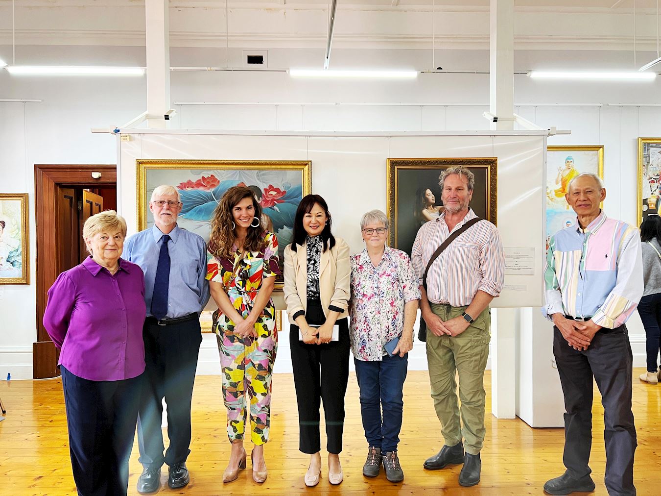 ![]() 图3:阿德莱德港市长博恩(Claire Boan)女士(左三)在开幕式上与画展主办方合影。 |