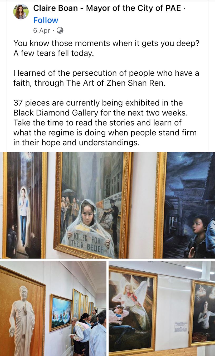 阿德莱德港市长博恩(Claire Boan)女士为美展揭幕,并赞扬艺术家们高超的造诣,感佩他们以艺术作品的方式传递真相的勇气。观众纷纷表示,这些美术作品启迪人心,令人震撼。一些观众观赏画作后,对法轮功产生兴趣,立即报名参加了免费教功班。