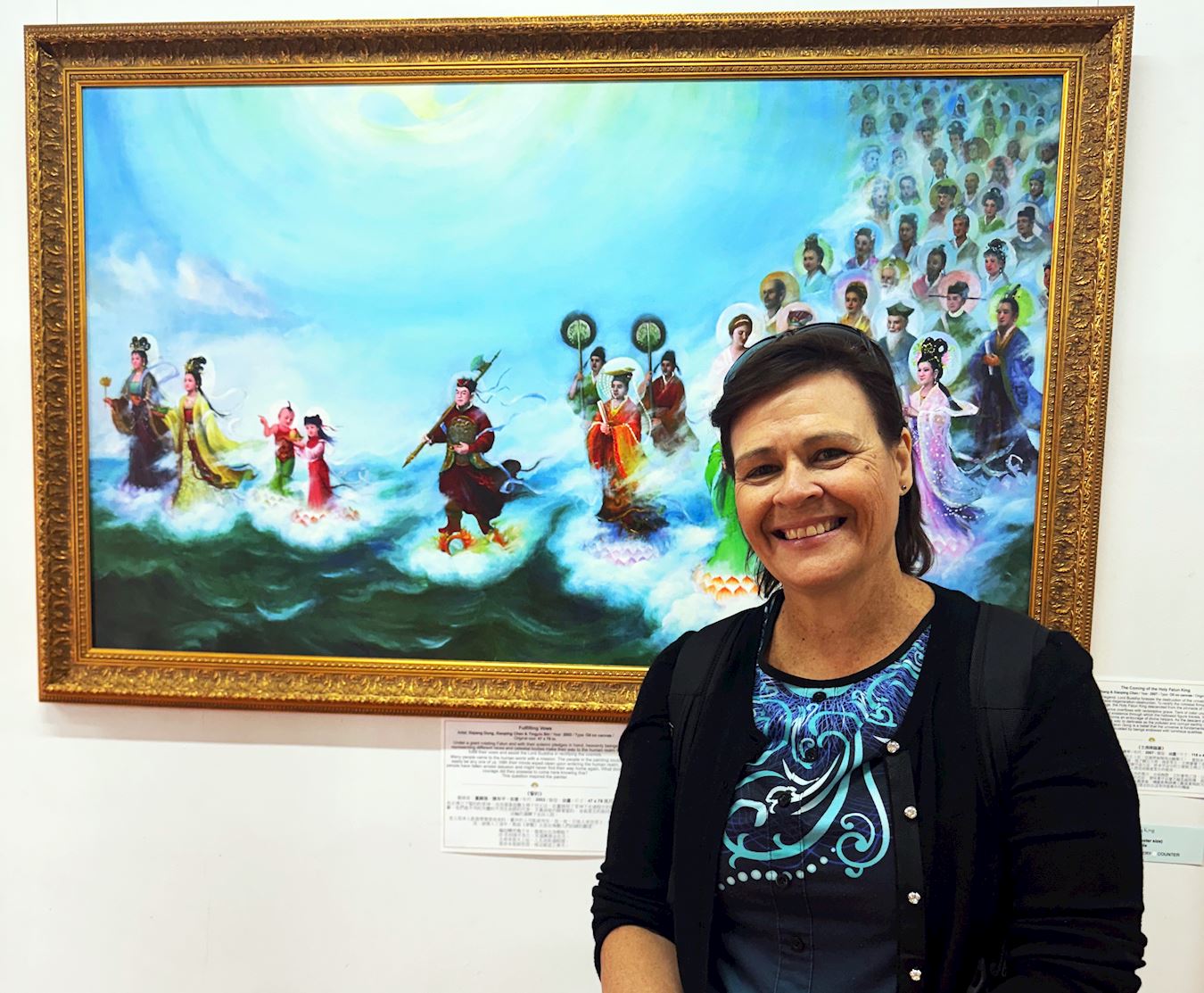 对于作品中大量表现真、善、忍的主题,她表示:“这些作品中蕴含着希望,我认为这是信仰的意义。当我们有信仰时,我们就有走过黑暗的力量,无论当时发生什么,都会坚持下去。这些美术作品中明亮的色彩和展现的威力,都表明了对未来充满希望。”