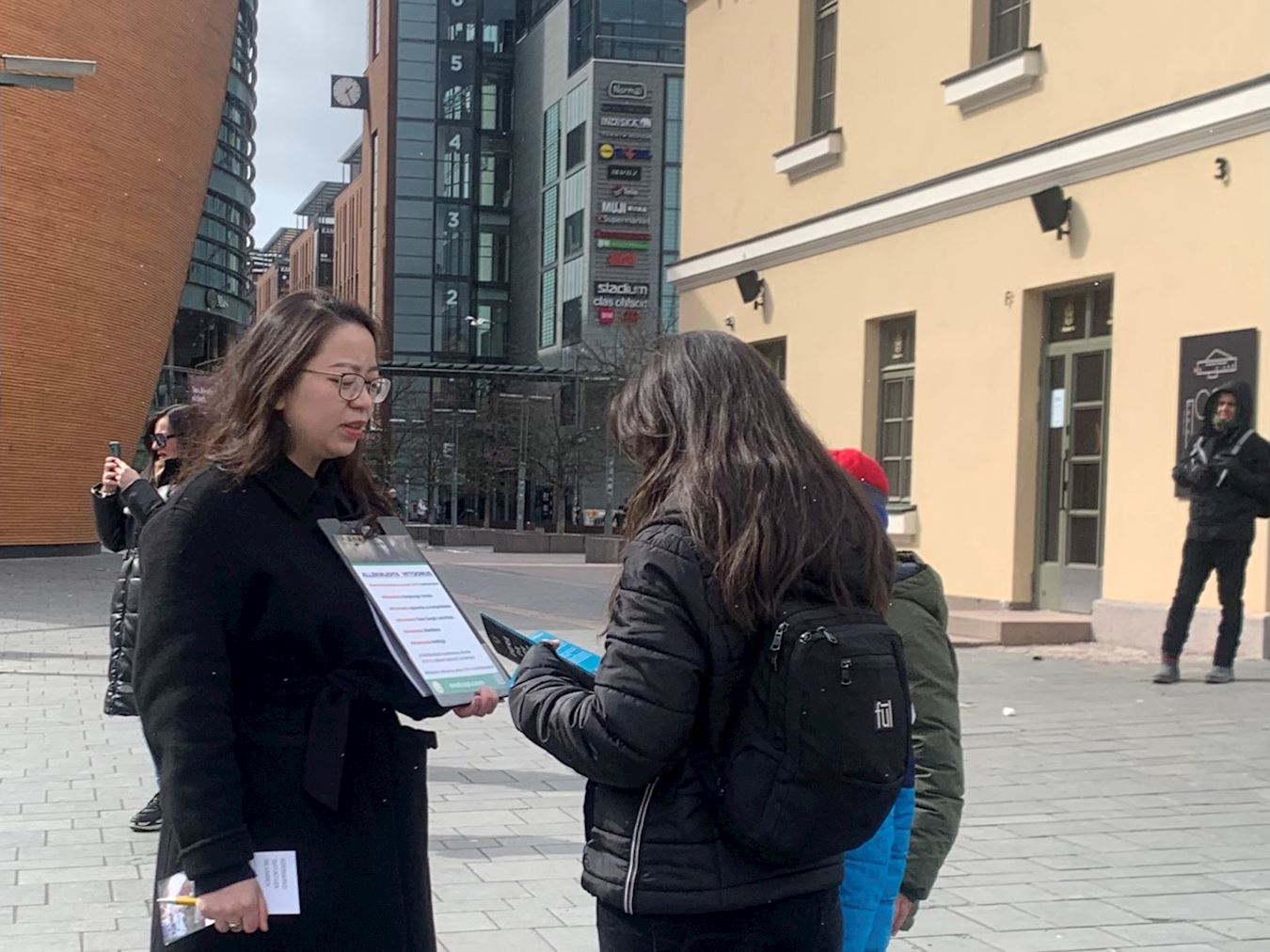 一位名叫苏珊娜的芬兰女士停下脚步在反迫害征签表上签下了她的名字。离开前,她告诉法轮功学员:“你们所做的事情非常重要,要继续努力。”