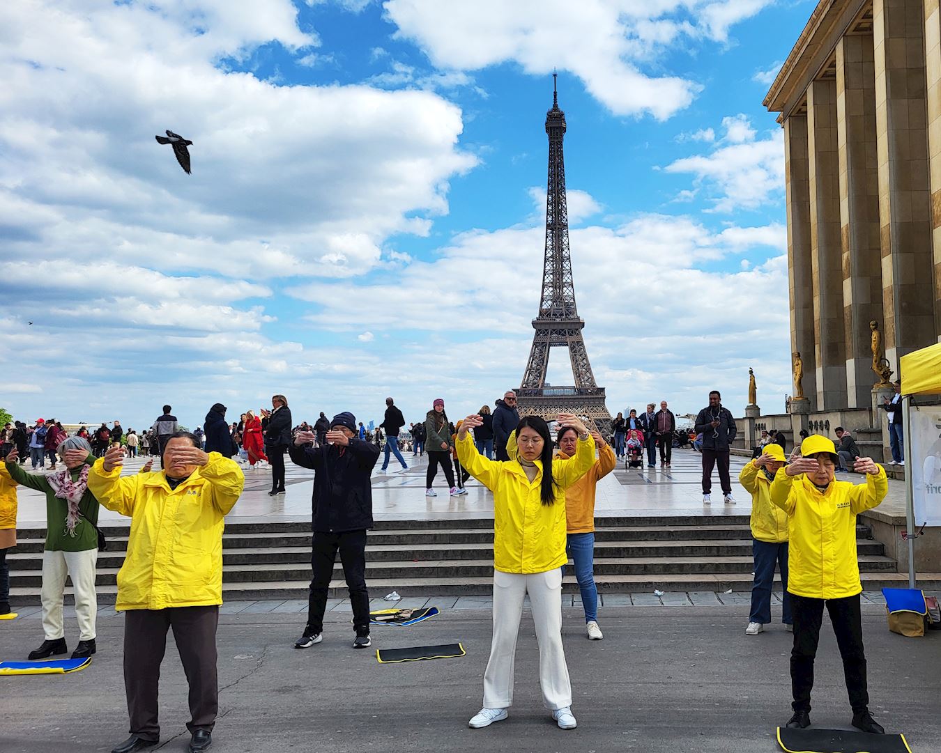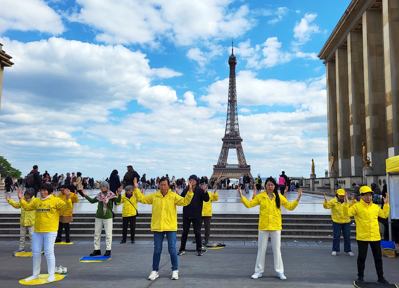 ![]() 图1~3:二零二四年四月二十五日下午,法轮功学员在埃菲尔铁塔下的人权广场集体炼功。 |