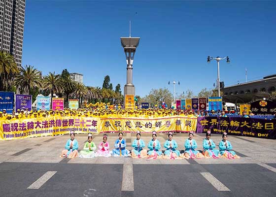 美国旧金山的法轮功学员五月十一日在旧金山举办游行活动,庆祝法轮大法弘传世界32周年暨法轮功创始人李洪志师父73岁华诞。