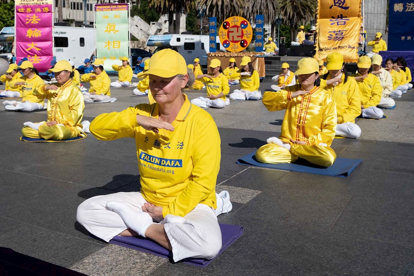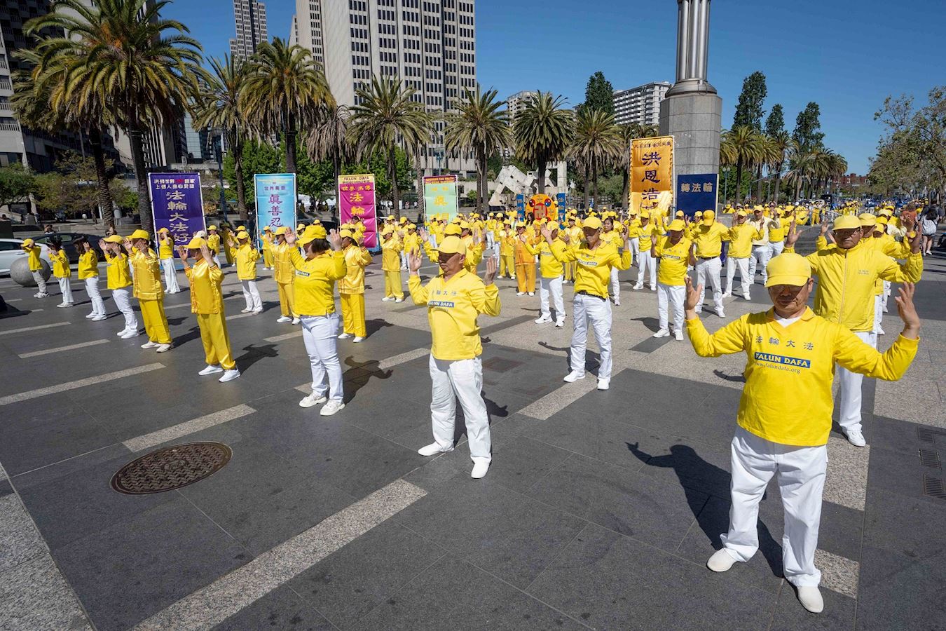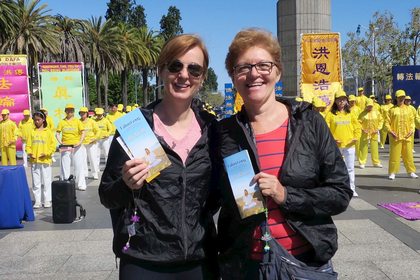 早晨,学员们在广场上集体炼功。悠扬的炼功音乐和舒缓的动作,吸引了游客们久久徘徊,观看拍照。游客们反映,虽然广场上人数众多,却让他们感受到一片静谧、祥和与美好。