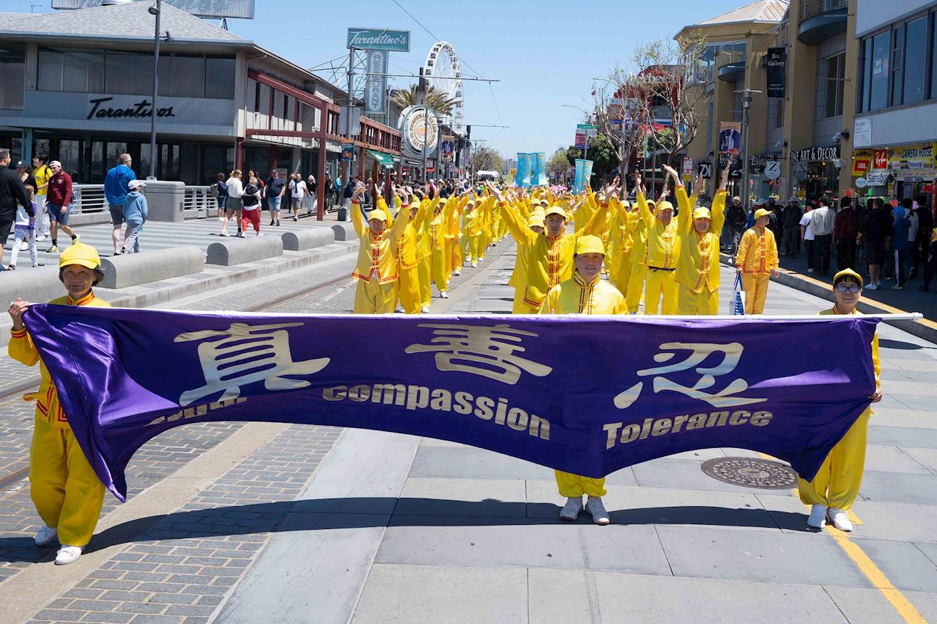 最后,学员们排列成整齐浩荡的队伍,沿着市中心的主要街区游行。活动中,多名华人在亲眼见证了法轮功在海外弘传的盛况后,当场声明退出了党组织。