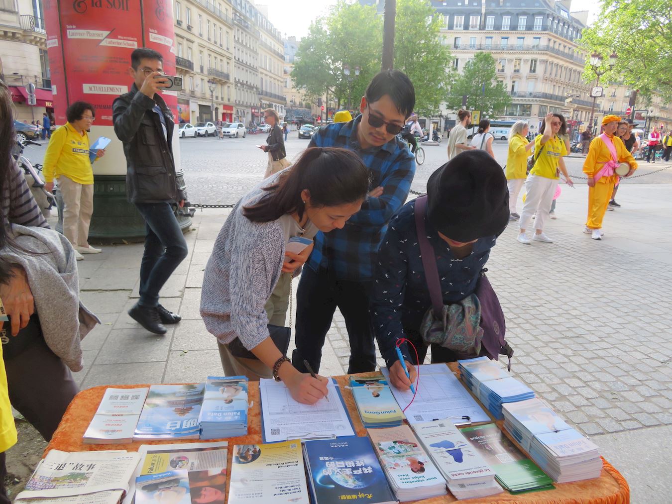 ![]() 图8~11:人们在请愿书上签字,支持法轮功学员的反迫害行动。 |