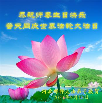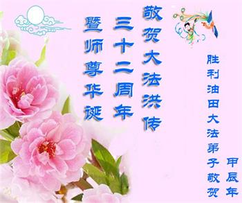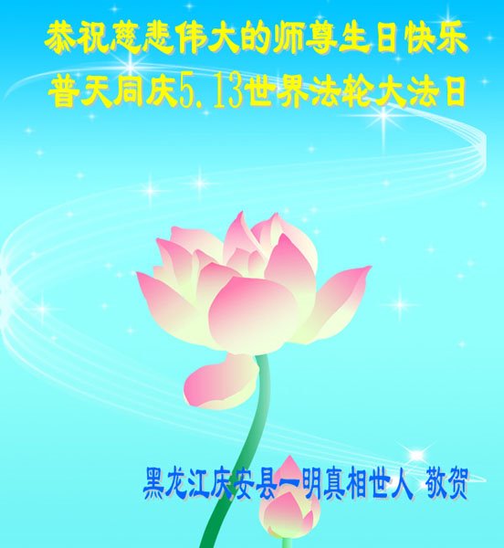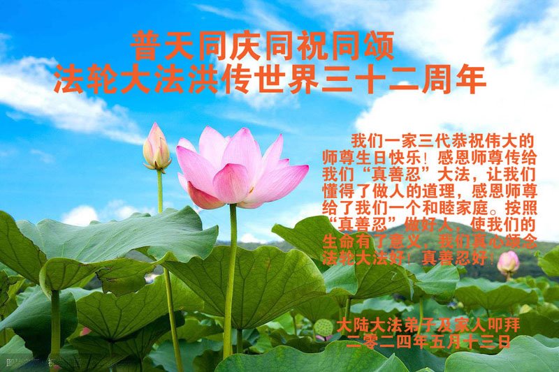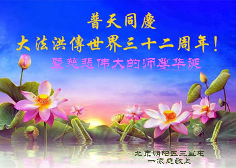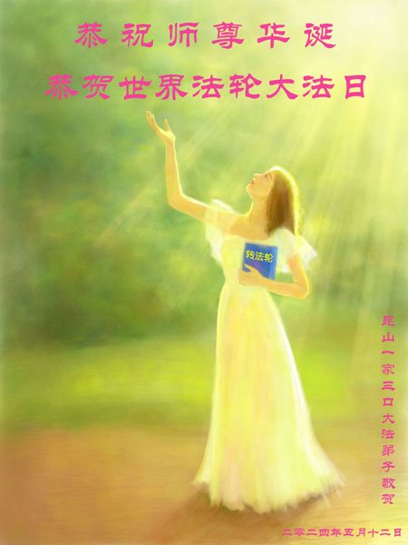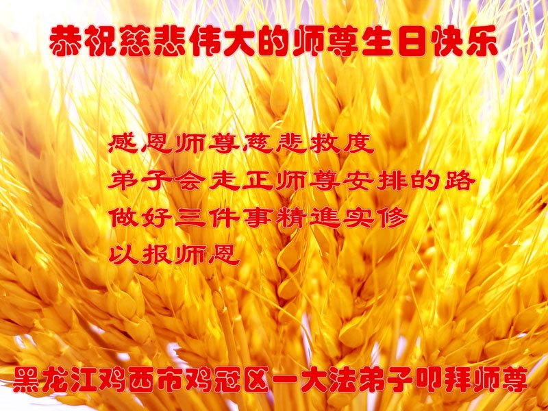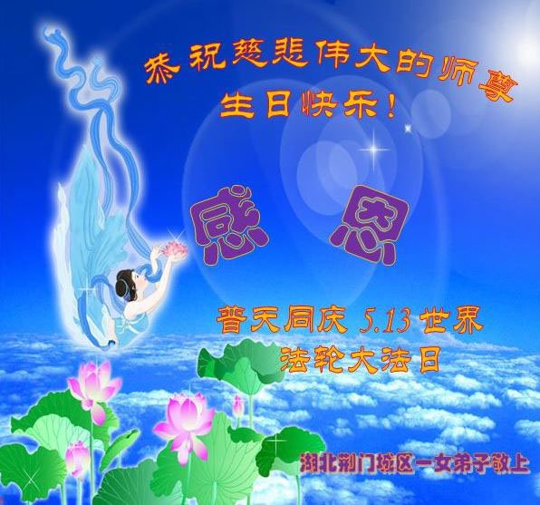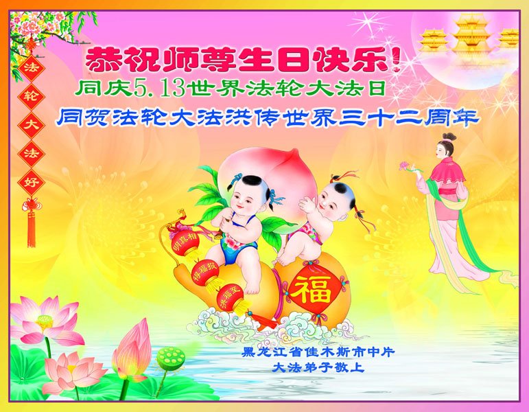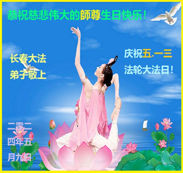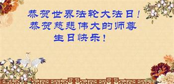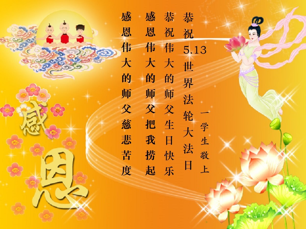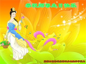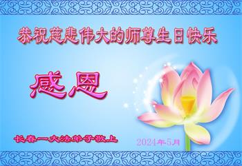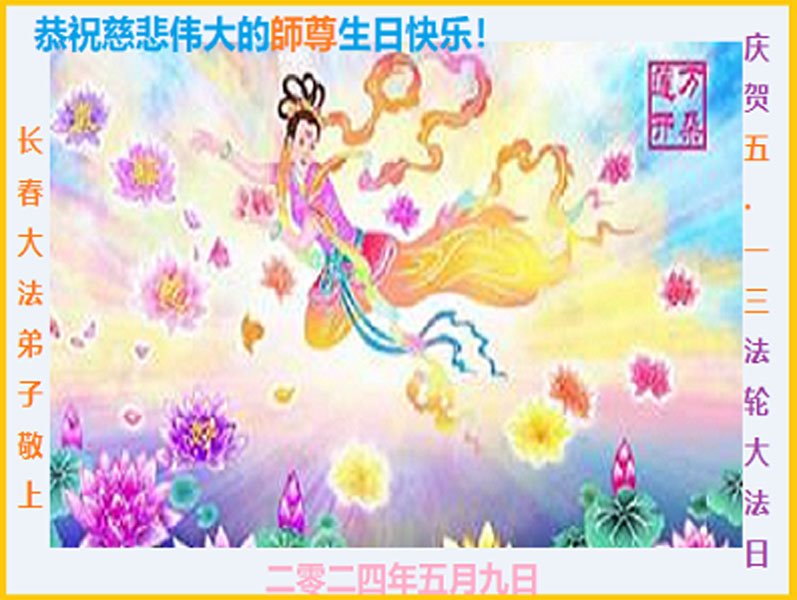在普天同庆的日子里,我怀着虔诚的心感恩师父,这是无法用人类语言来表达的心境。恭祝师父生日快乐!祝贺大法洪传三十二周年!