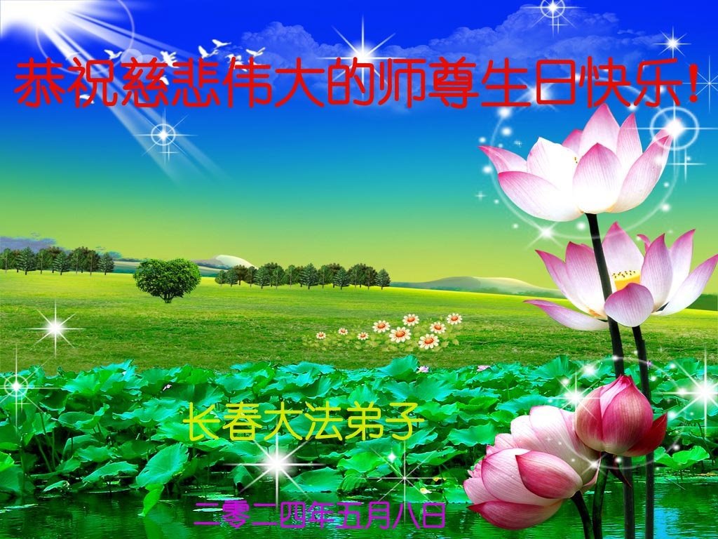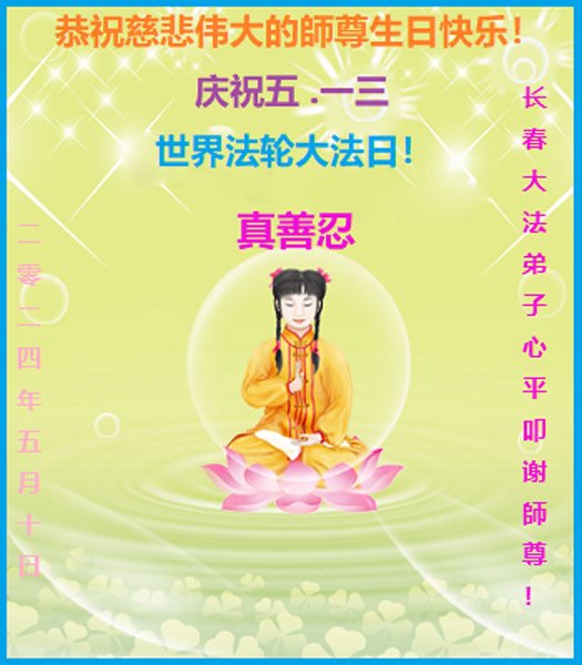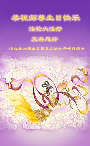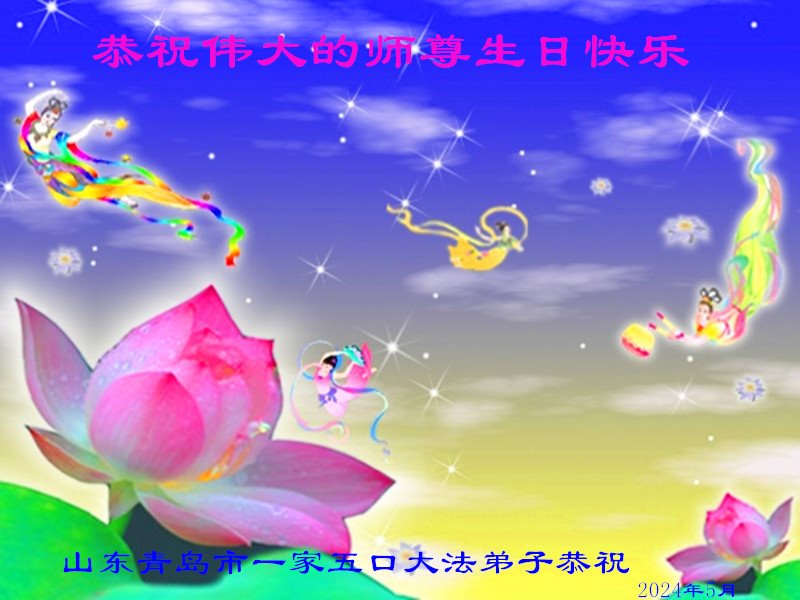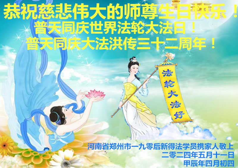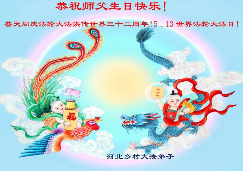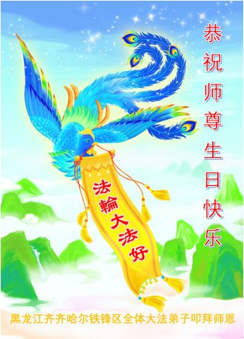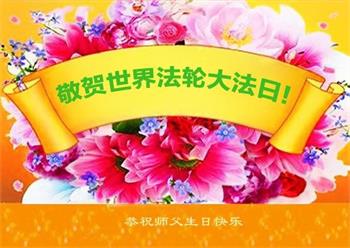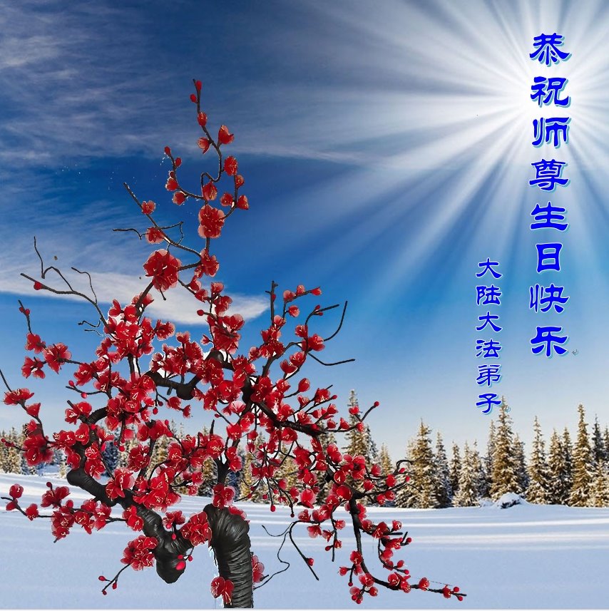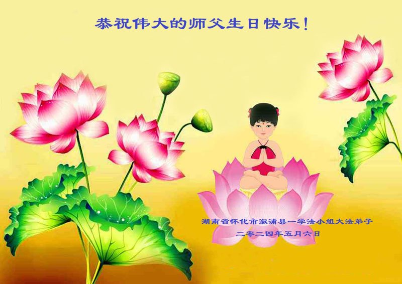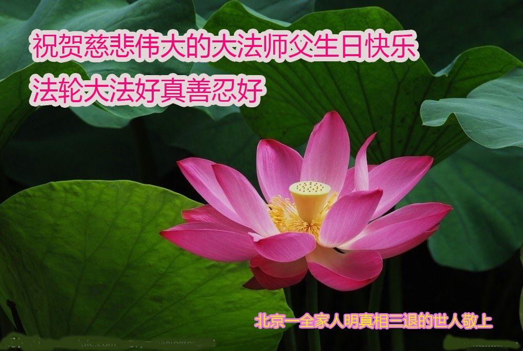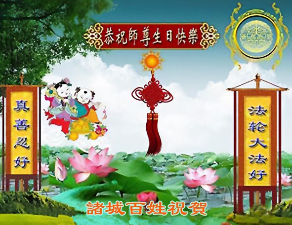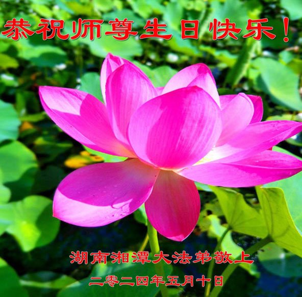 在普天同庆的日子里,我怀着虔诚的心感恩师父,这是无法用人类语言来表达的心境。恭祝师父生日快乐!祝贺大法洪传三十二周年!