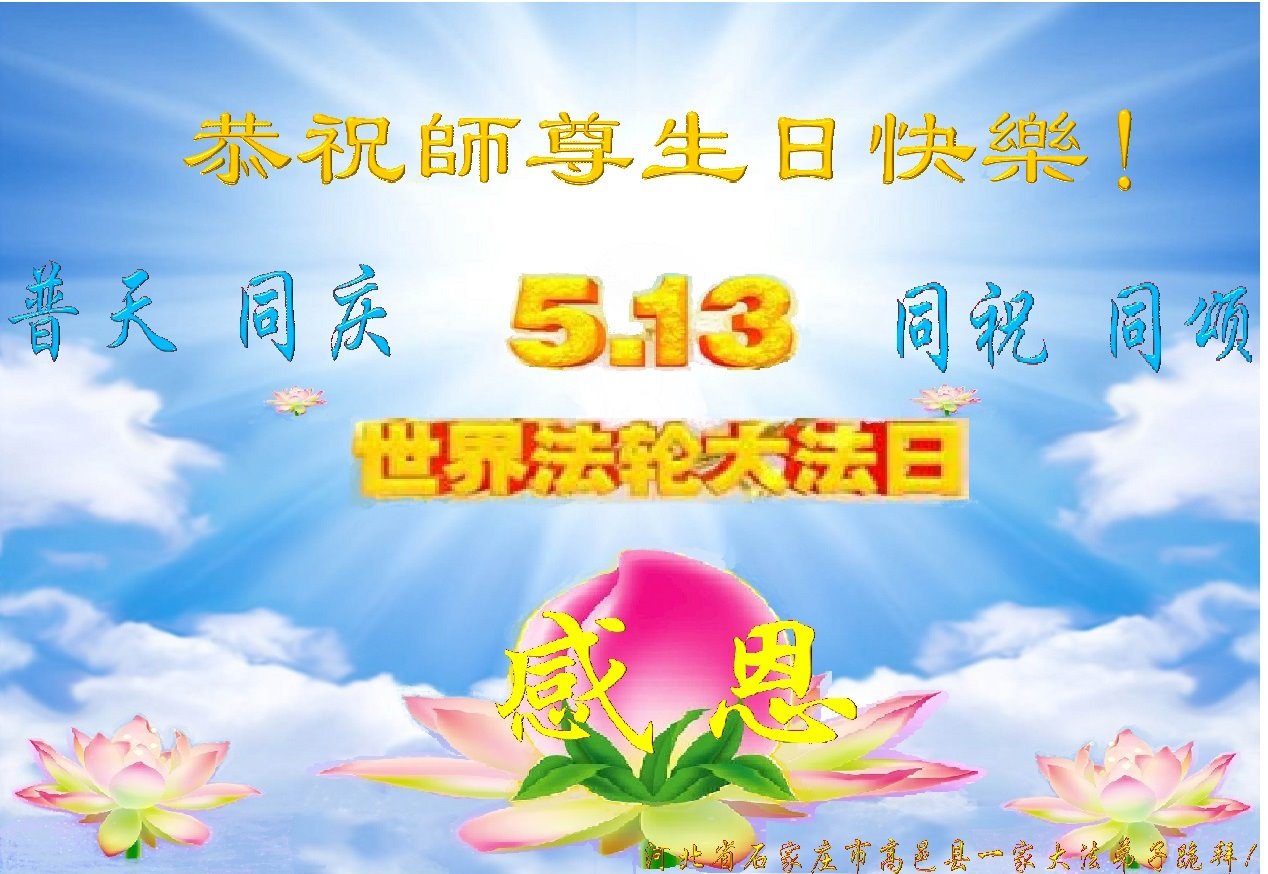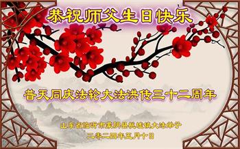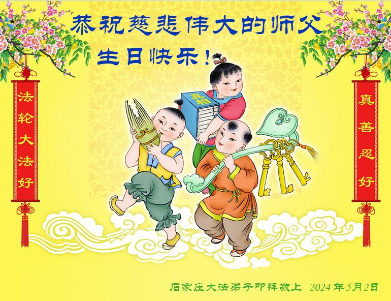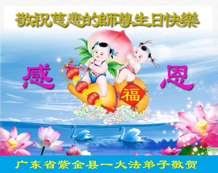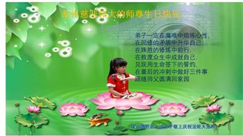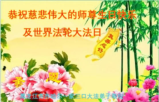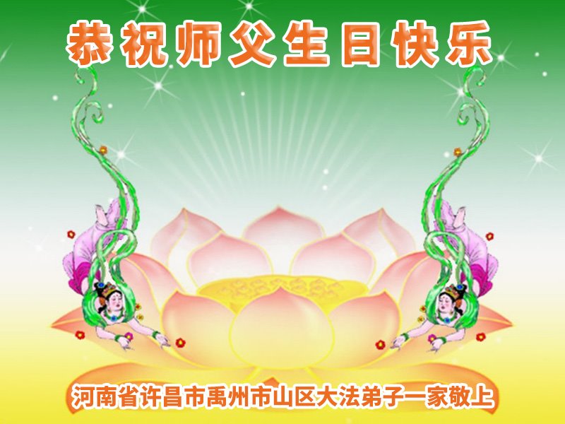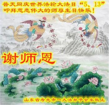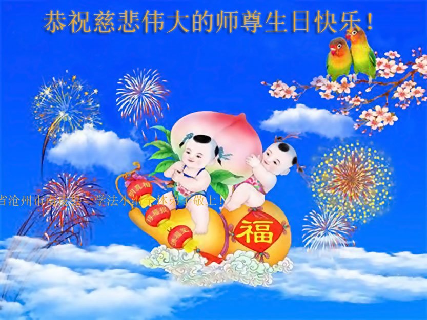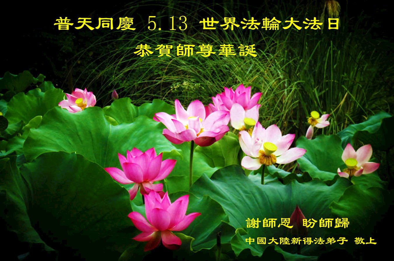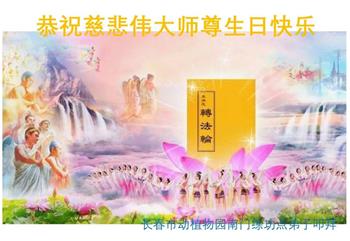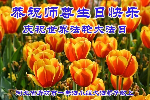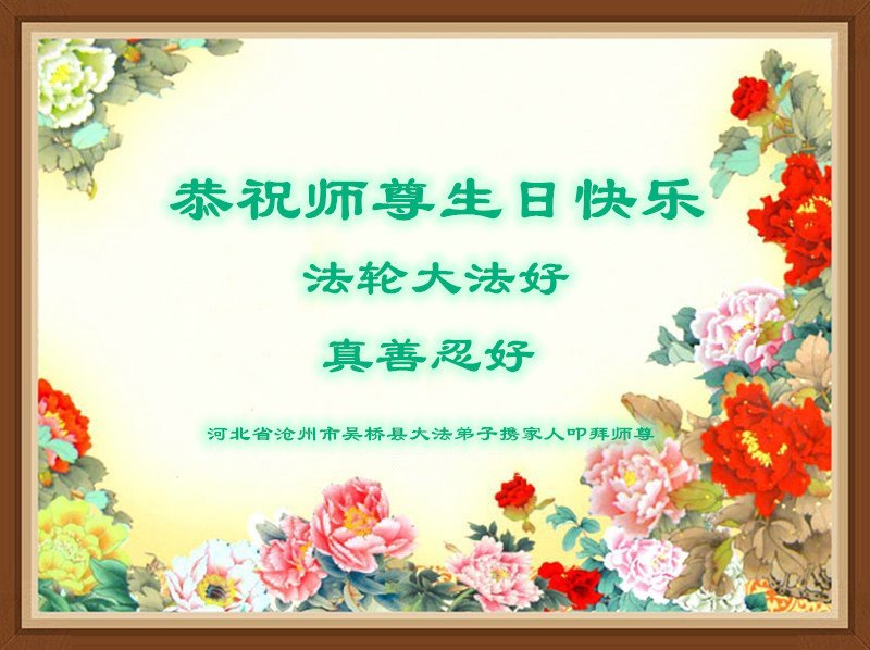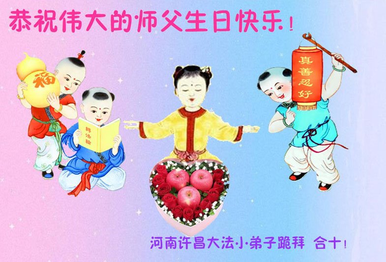 在普天同庆的日子里,我怀着虔诚的心感恩师父,这是无法用人类语言来表达的心境。恭祝师父生日快乐!祝贺大法洪传三十二周年!