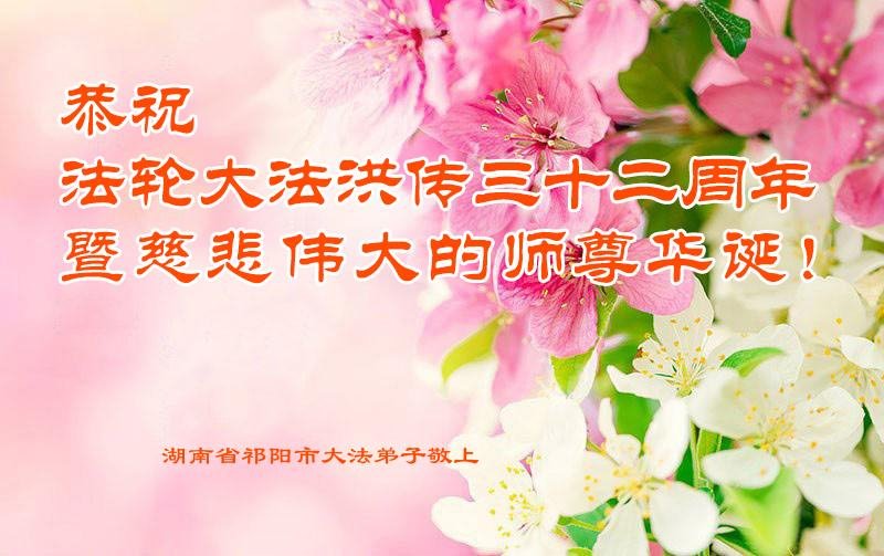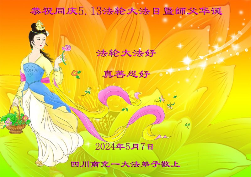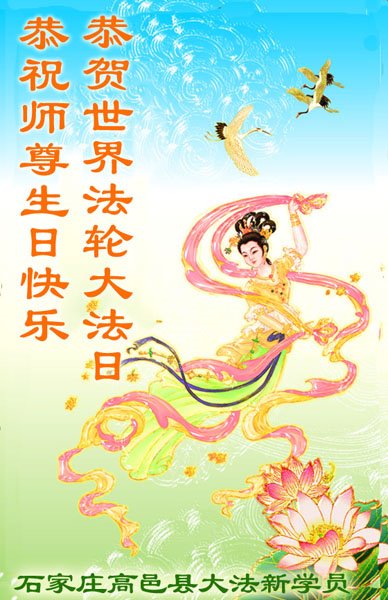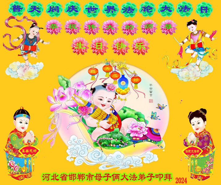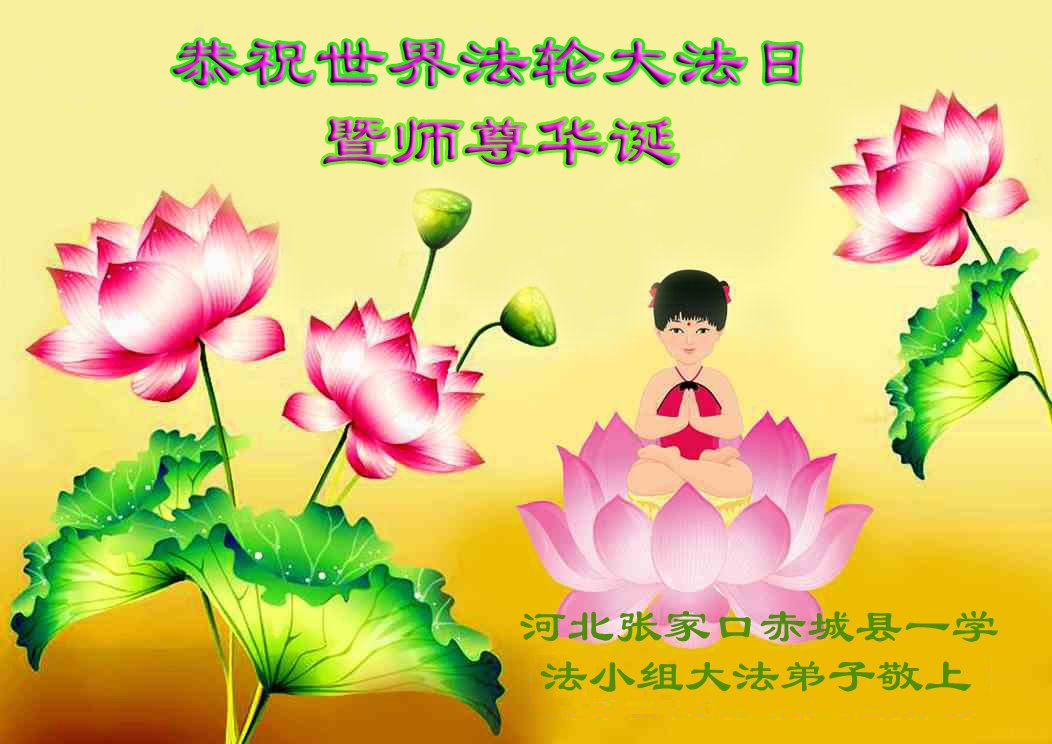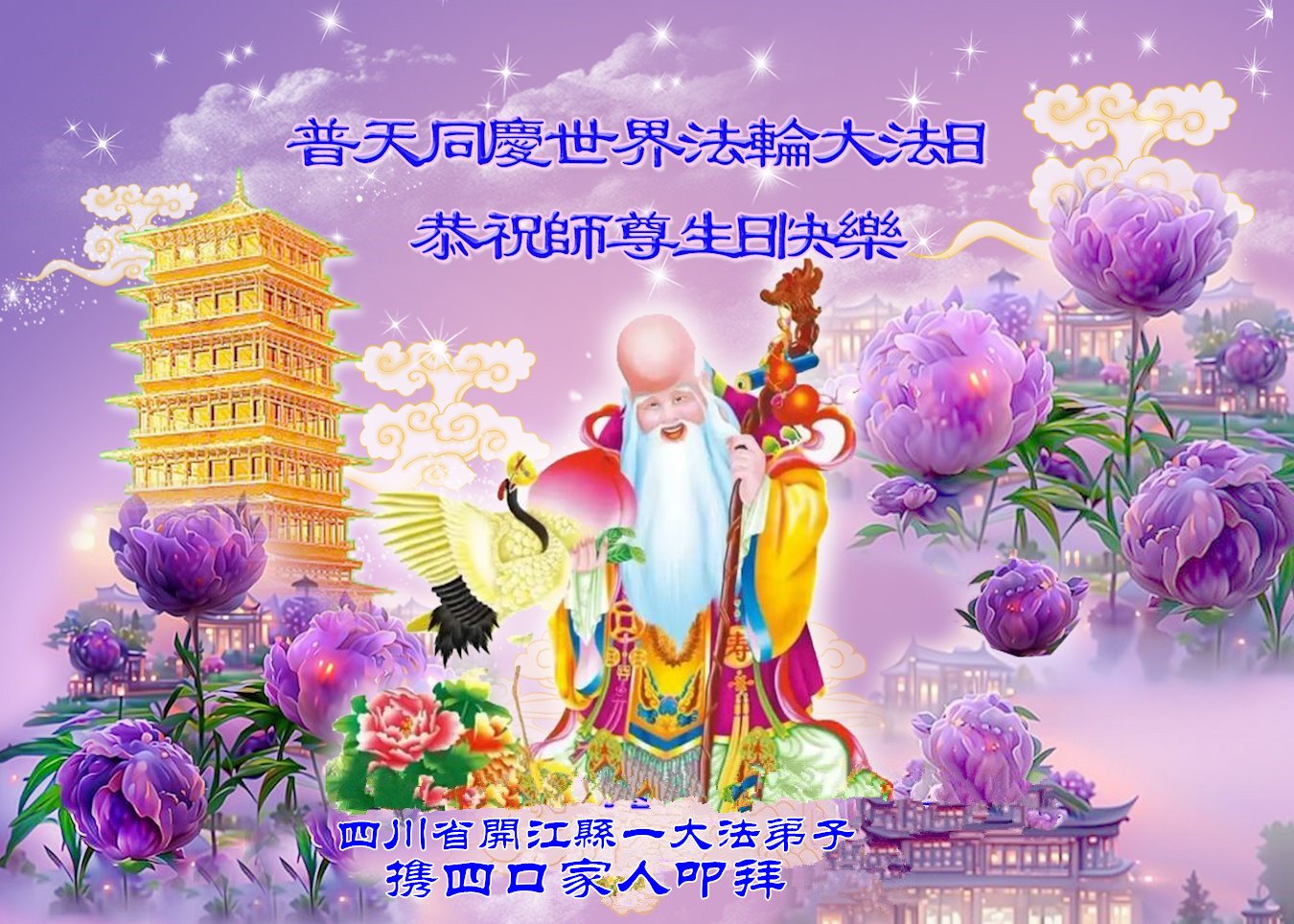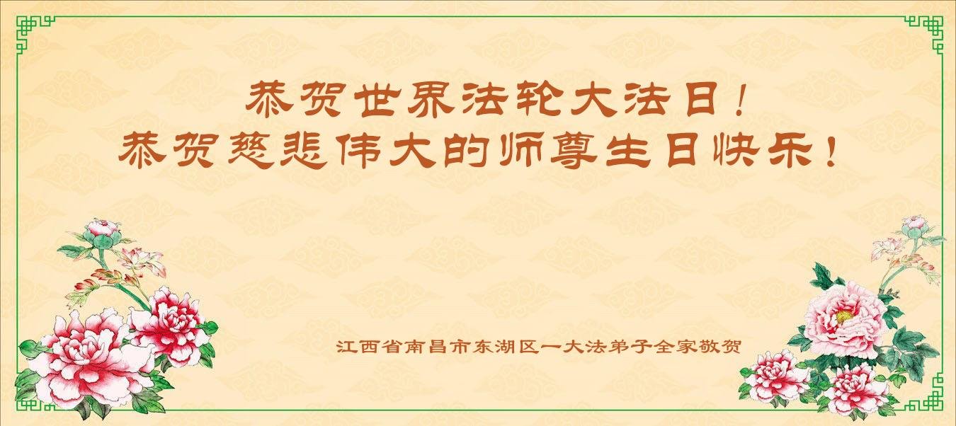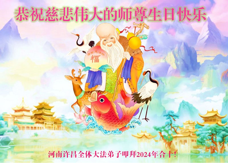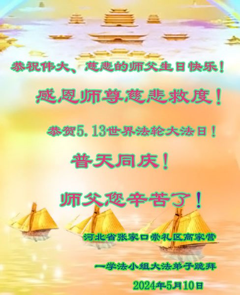 在普天同庆的日子里,我怀着虔诚的心感恩师父,这是无法用人类语言来表达的心境。恭祝师父生日快乐!祝贺大法洪传三十二周年!