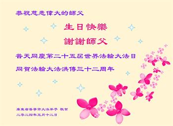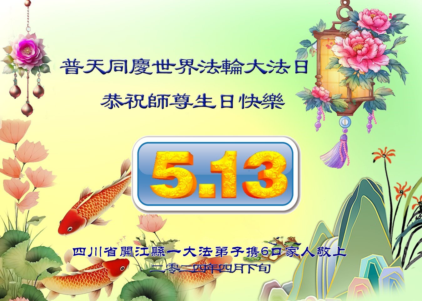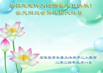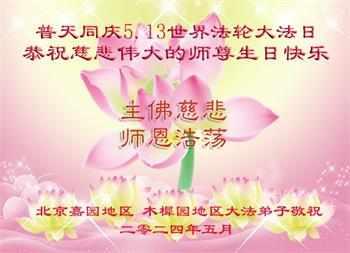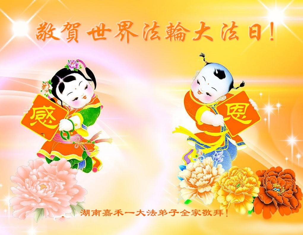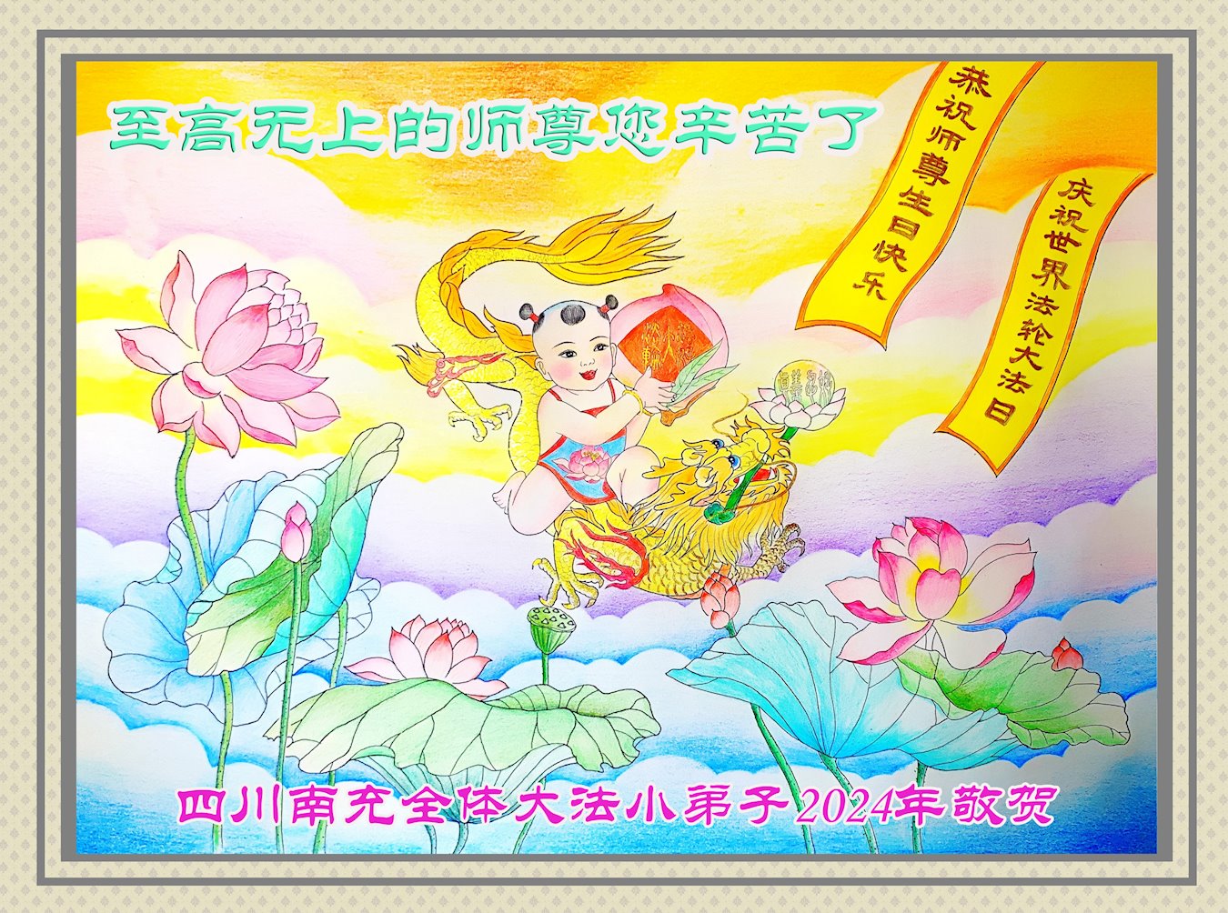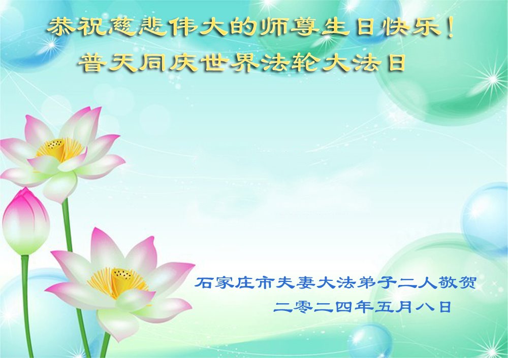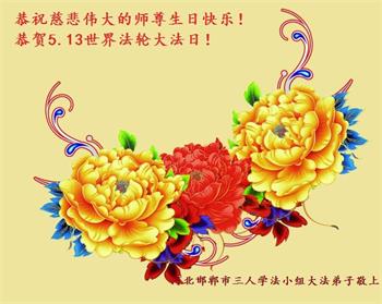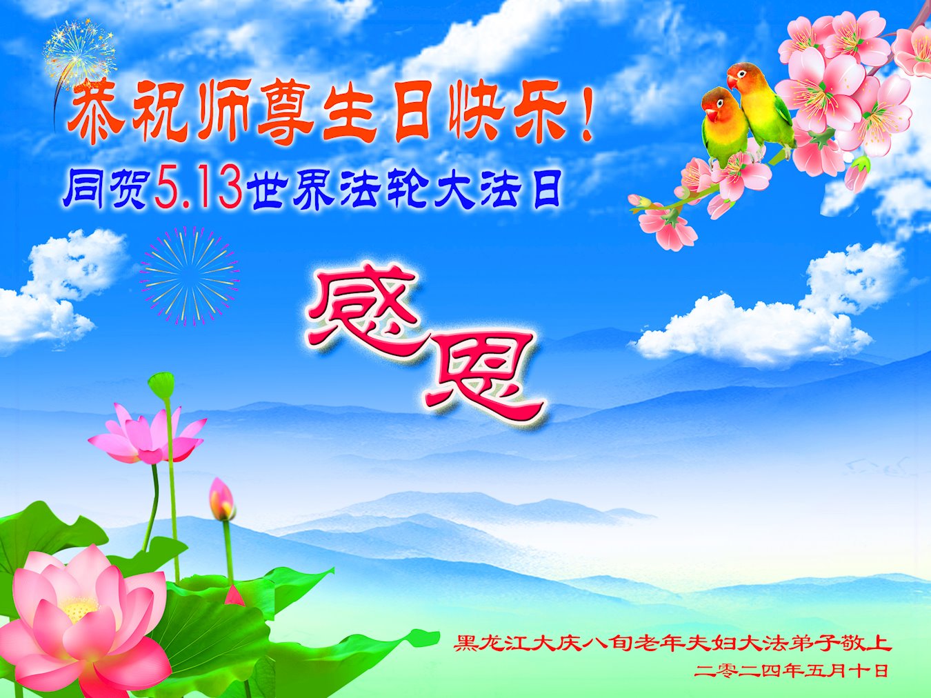 在普天同庆的日子里,我怀着虔诚的心感恩师父,这是无法用人类语言来表达的心境。恭祝师父生日快乐!祝贺大法洪传三十二周年!