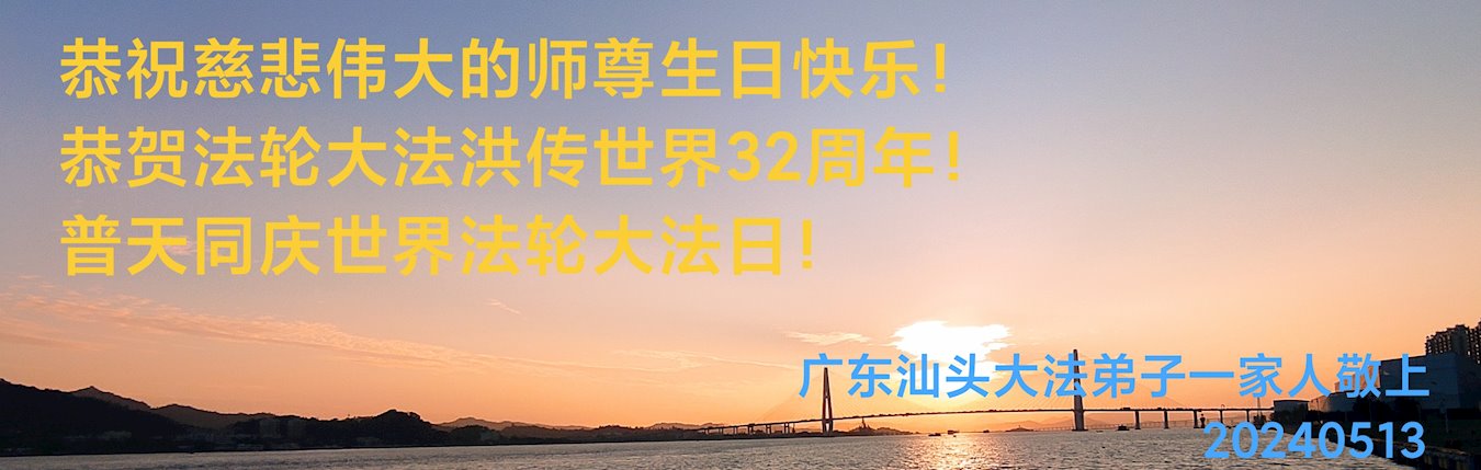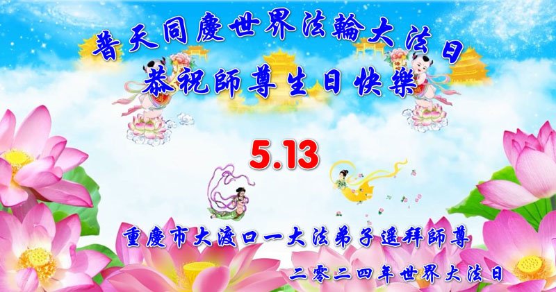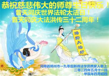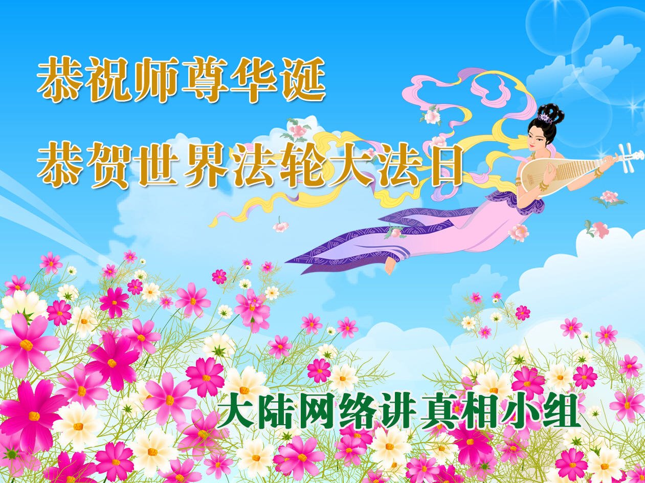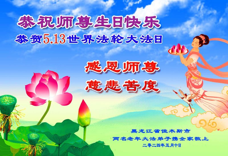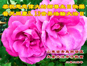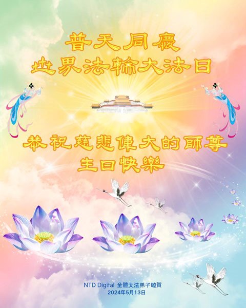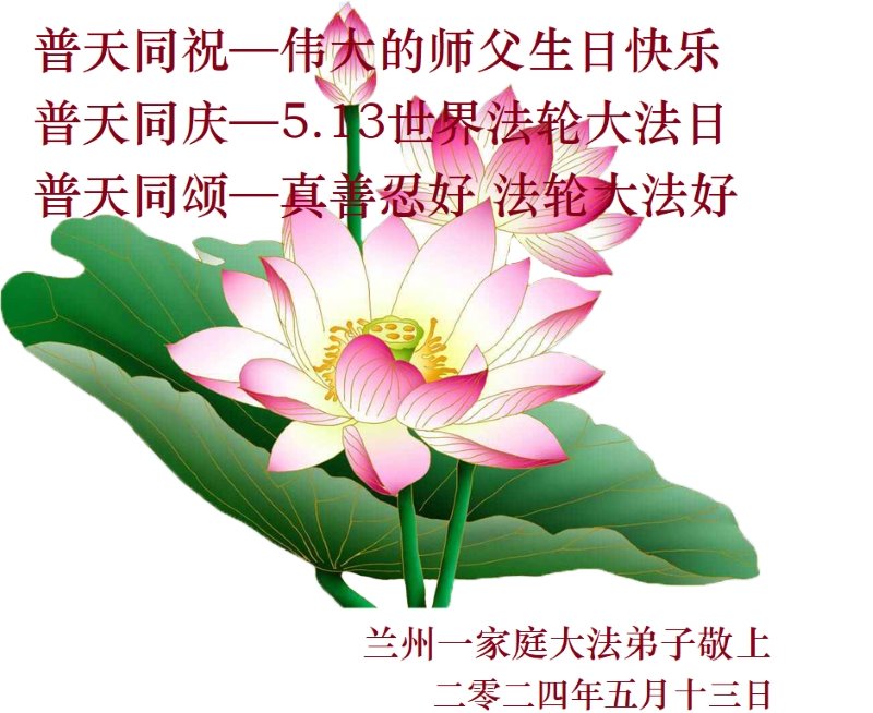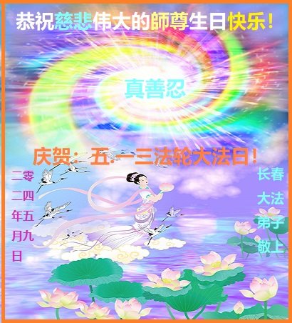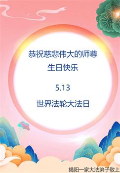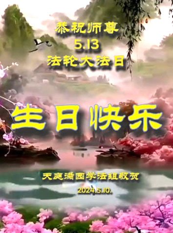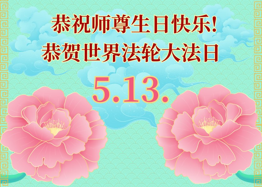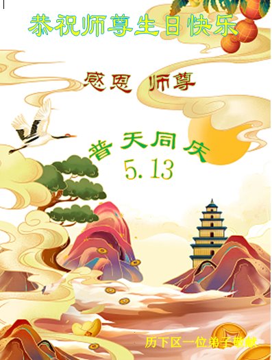 今年的五∙一三是第二十五届世界法轮大法日暨师尊华诞!弟子衷心恭祝师尊生日快乐!普天同祝同颂世界法轮大法日!感恩师尊慈悲普度!感恩师尊传法三十二周年,您为弟子及穹宇众生得救呕心沥血的操劳!弟子们唯有多学法修好自己,做好三件事,不辜负师尊的慈悲救度!