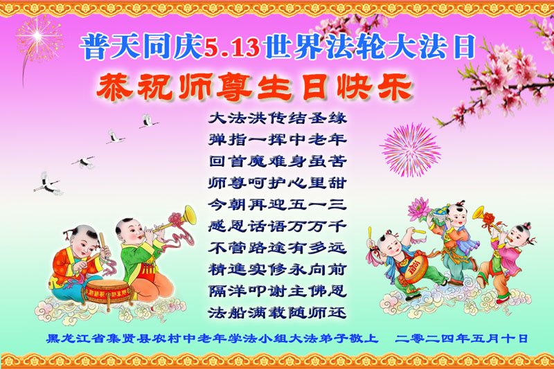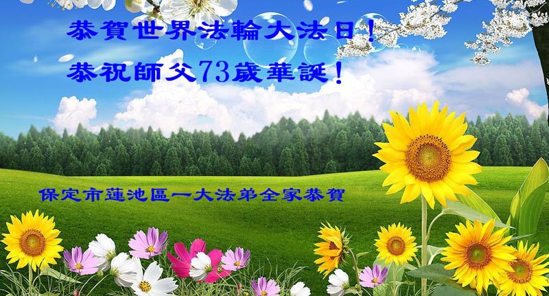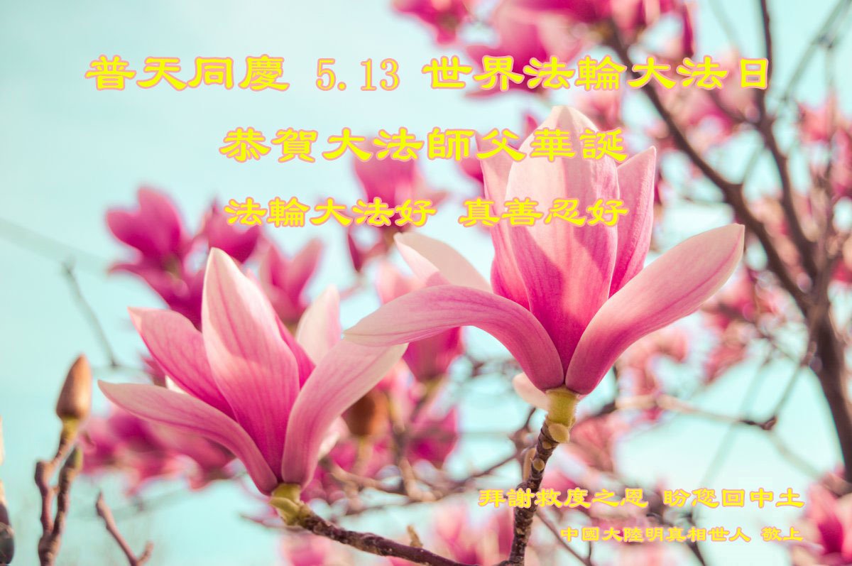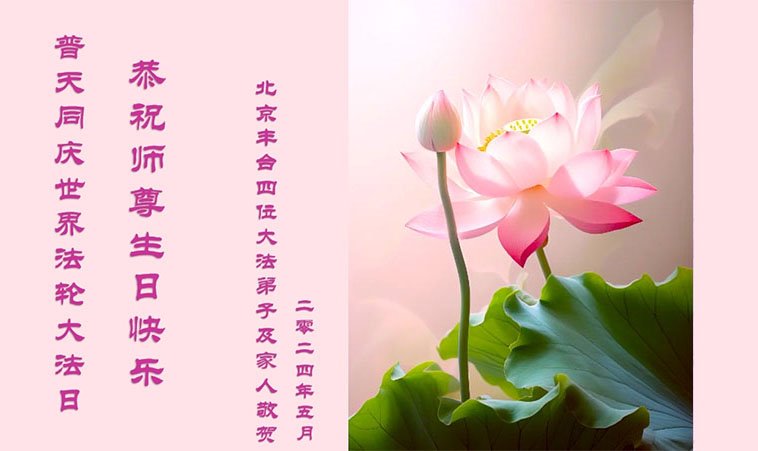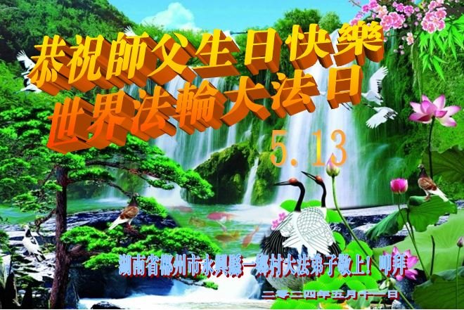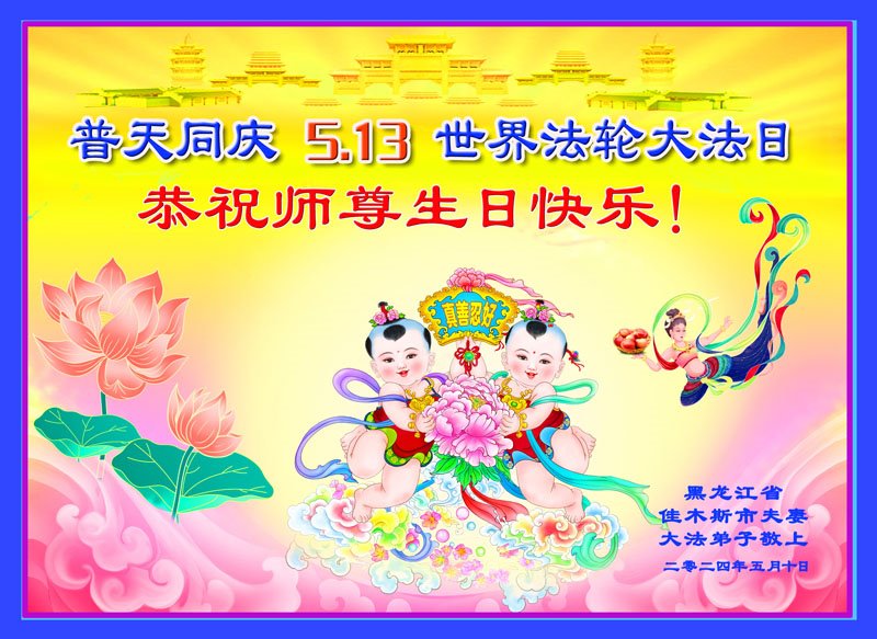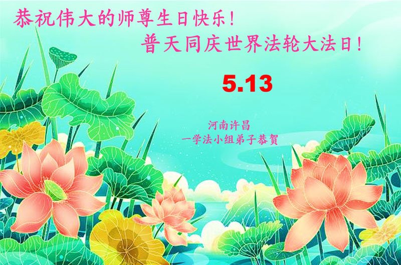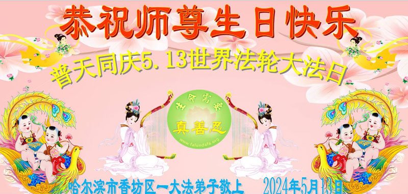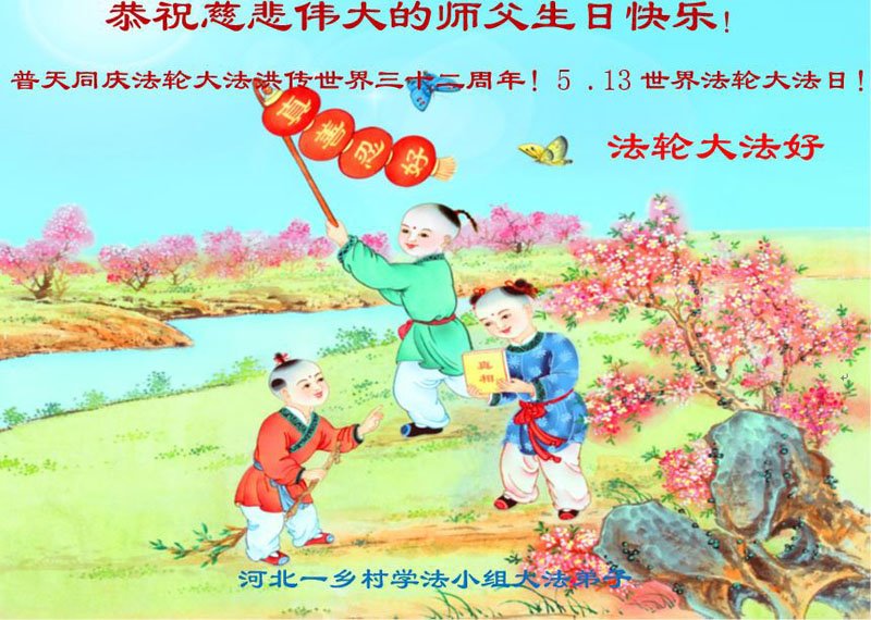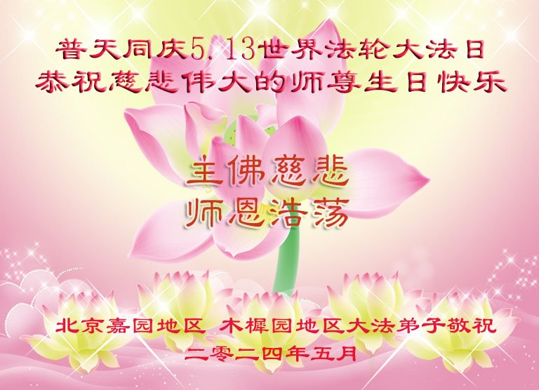 今年的五∙一三是第二十五届世界法轮大法日暨师尊华诞!弟子衷心恭祝师尊生日快乐!普天同祝同颂世界法轮大法日!感恩师尊慈悲普度!感恩师尊传法三十二周年,您为弟子及穹宇众生得救呕心沥血的操劳!弟子们唯有多学法修好自己,做好三件事,不辜负师尊的慈悲救度!