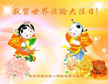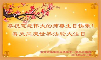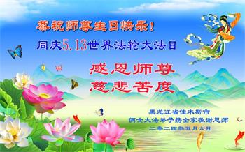 我奶奶爷爷都修炼法轮功。我从小目睹了大法弟子的高尚品德,处处为别人着想的高风亮节。同时也看到了邪党对大法弟子的无端迫害。那时邪党人员经常到家里骚扰,绑架我奶奶,我吓得抱着奶奶的腿大哭,幼小的心灵受到了极大的伤害,从此我恨透了某某党。所以我从上学开始,坚决不申请加入邪党的党、团组织。我虽然还没有走入修炼,但只要遇到困难,我就诚念“法轮大法好,真善忍好”九字真言,就能得到师父的保护,困难很快就迎刃而解。感恩师父的慈悲救度!恭祝师父生日快乐!