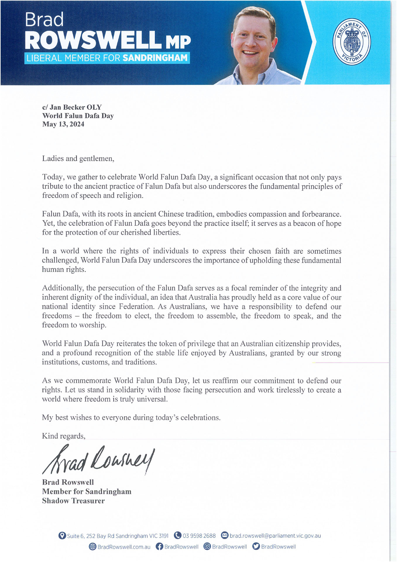 谈及法轮功学员二十五年来坚持反迫害,他认为:“这是正确且重要的,我们大家也应该让法轮功学员得到来自政界及社会的支持,这样也会给他们力量,让他们坚持下去,觉得值得继续下去,非常值得。”