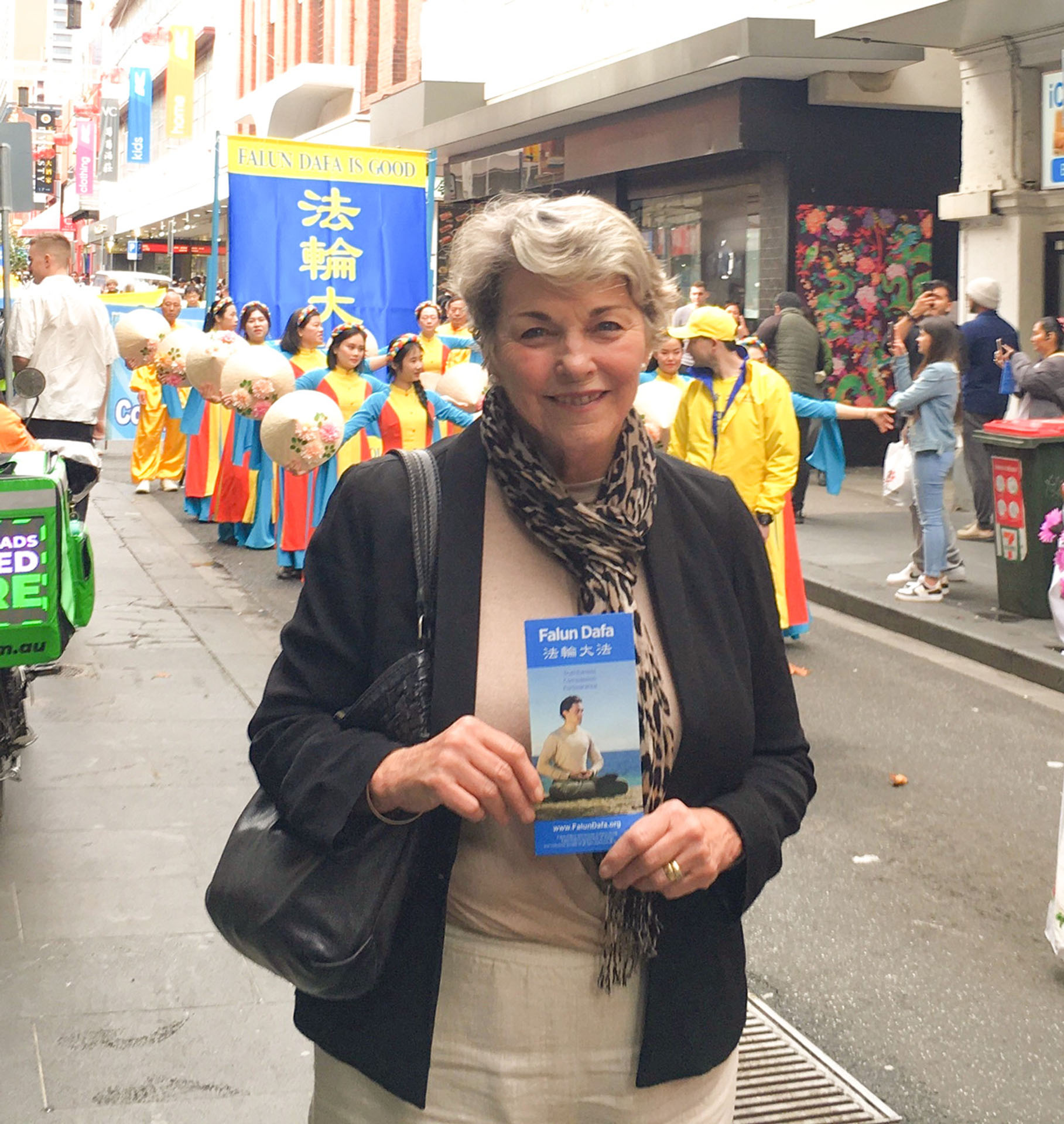 当得知法轮功教人按照真、善、忍做好人,她说:“这对我而言非常美好,我们每个人都应该去炼这功法,去纯净我们的心灵。我认为我们每个人都应该从自己开始,不应该去看其他人做错了什么,我也是一直这么做的。现在了解法轮大法后,更加强了我的想法,我会继续这样做。”
