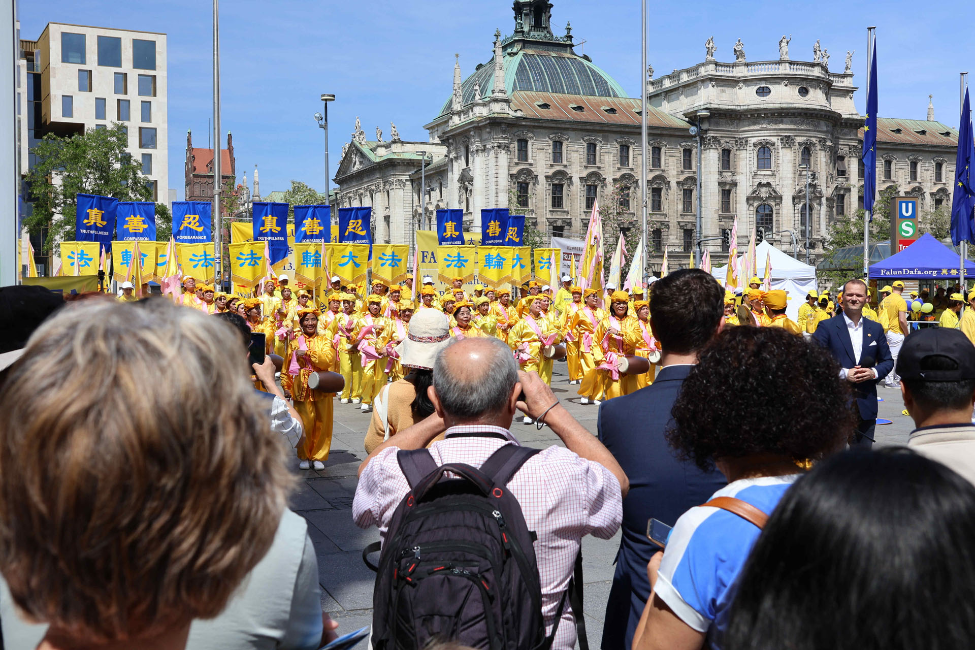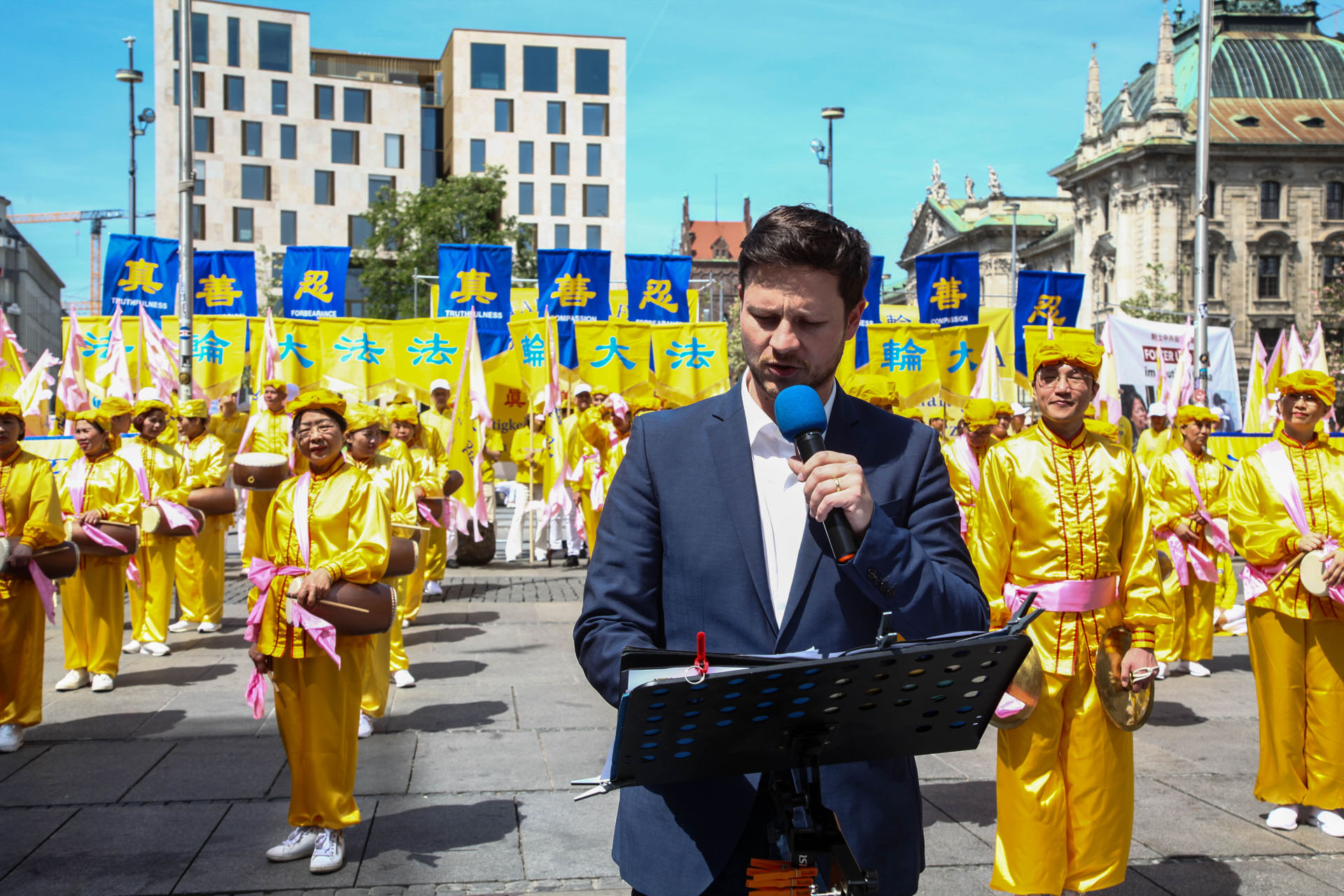 地方议员本尼迪克特·弗莱塞德(Benedikt Flexeder)在演讲中表示:“今天,在慕尼黑我们颂扬法轮大法真、善、忍所体现出的和平、宽容及祥和的价值观。今天,也让我们牢记法轮功学员在重重阻饶及严酷迫害下呈现的不可撼动的堅毅及不屈不饶的精神。”“今天我们在此一起声援世界各地的法轮大法学员,为公正及自由发声。愿今天这个日子激励我们,为建立一个重视尊重人权及尊严的,具有真、善、忍特性的世界而努力。”