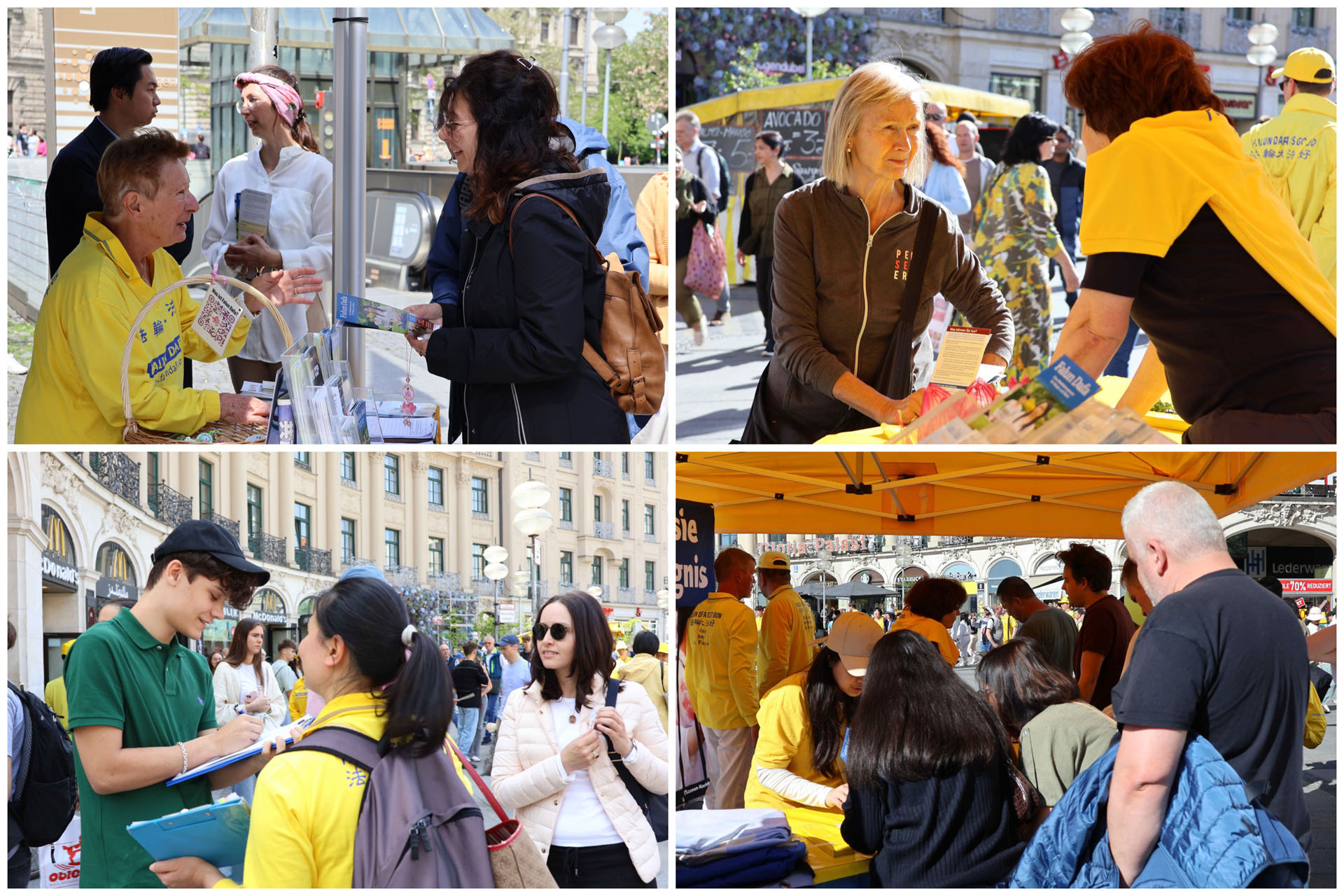 在卡尔广场上还设立了两个信息台,很多民众主动前来与法轮功学员交谈询问更多的讯息。