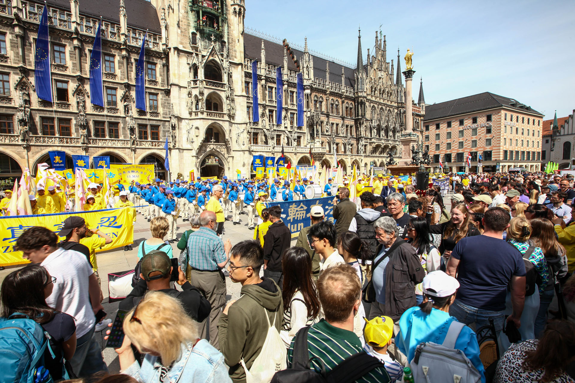 二零二四年五月十一日,德国及来自欧洲多国的法轮功学员在南部最大的城市慕尼黑举行了大型集会及游行活动,与民众共庆世界法轮大法日。
