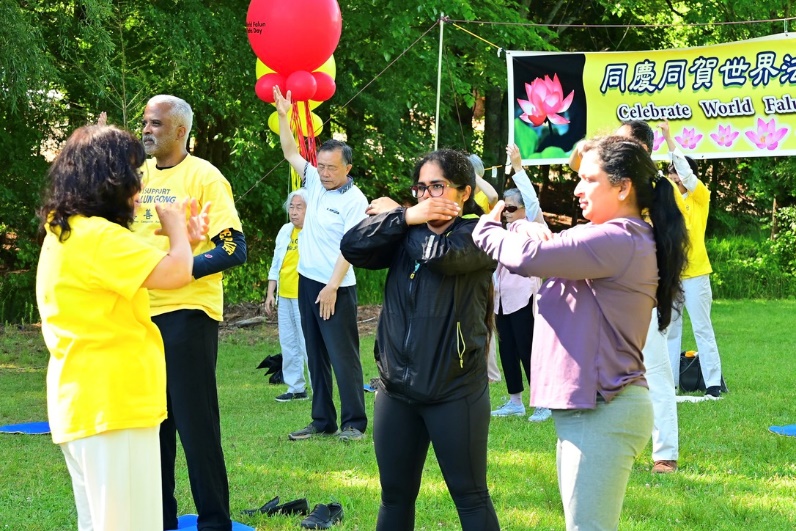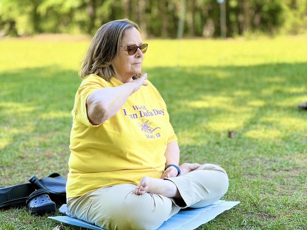![]() 图3:2024年5月12日,莫琳(Maureen)在北卡凯瑞市参加集体炼功。 |
