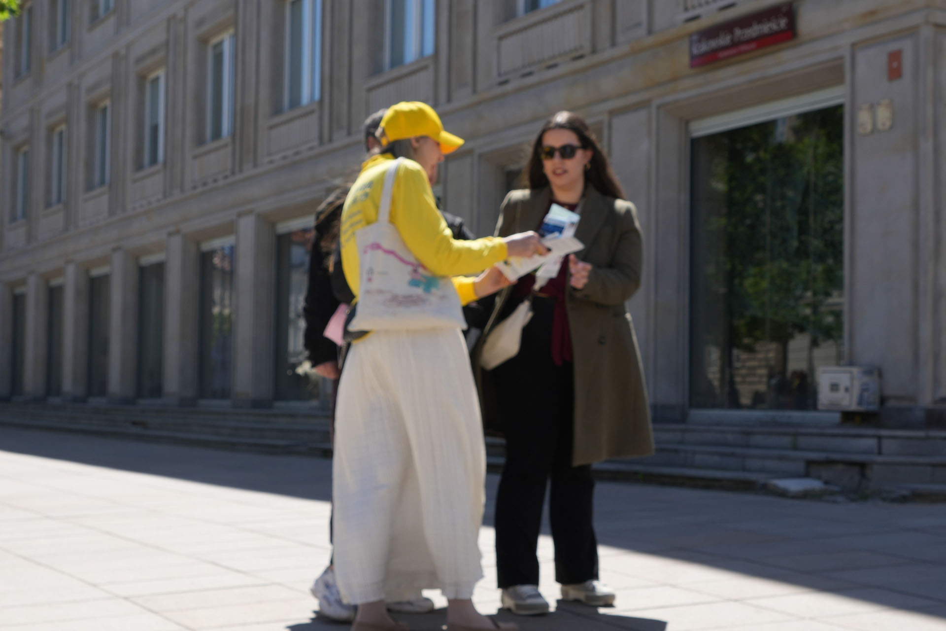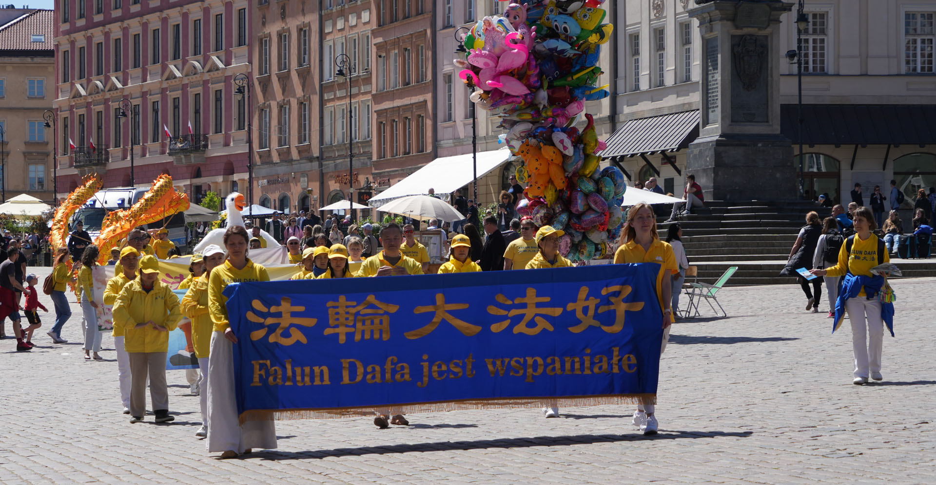 游行队伍在华沙五街口广场结束,一路上法轮功学员不停的向周边路人介绍法轮大法,介绍真善忍,介绍法轮功的真相,介绍法轮功在中国遭受的迫害,也不断有人索要法轮大法传单,有人询问炼功地点时间,也有人询问更多的法轮功真相。