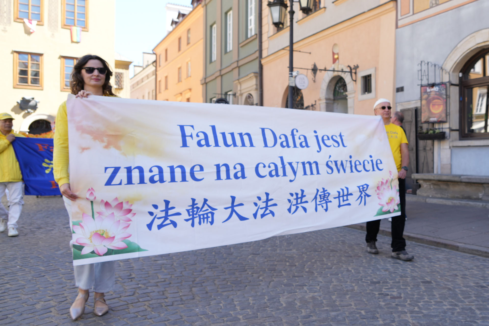 在游行前,法轮功学员集体学法并齐聚华沙古城广场炼功,向慈悲伟大的师尊恭贺华诞。法轮大法是甘甜雨露滋润了多少人干涸的心田,法轮大法是天音圣乐指引了多少人绝地逢生。法轮功学员谢师恩天梯法宝,让每个人一生受益无穷。