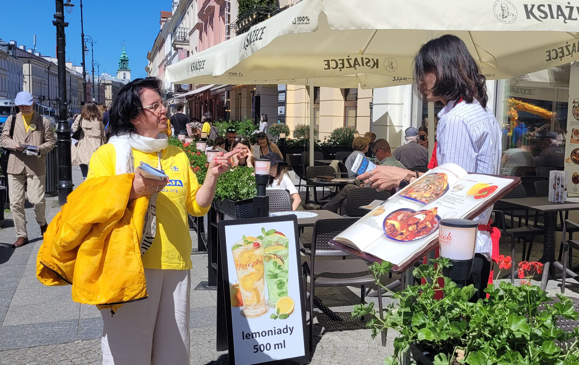 Mariola Klimczak 女士是一位教师,丈夫是一位波兰南方城市的政府官员,在华沙古城她们看见了法轮功的游行,也听到了扩音器中传出对法轮功的介绍,夫妻俩震惊于中共对法轮功的镇压及活摘器官的说:“这是可怕而残酷的事情。 我们坚决反对”。Marola丈夫接着说“这样的事情根本就不应该发生在世界上,是中国政府在做各种不符合人权的事情,必须要受到谴责”。