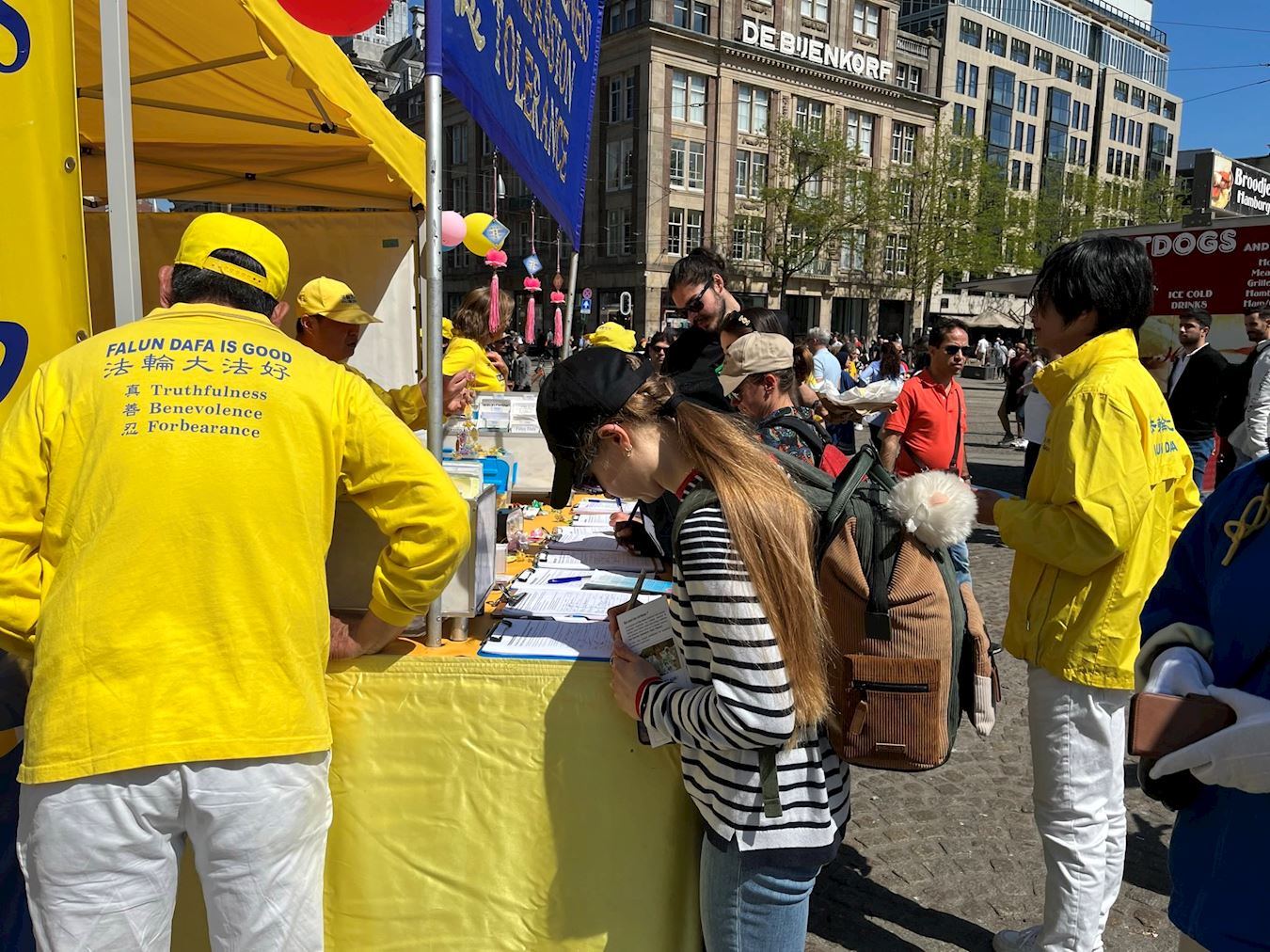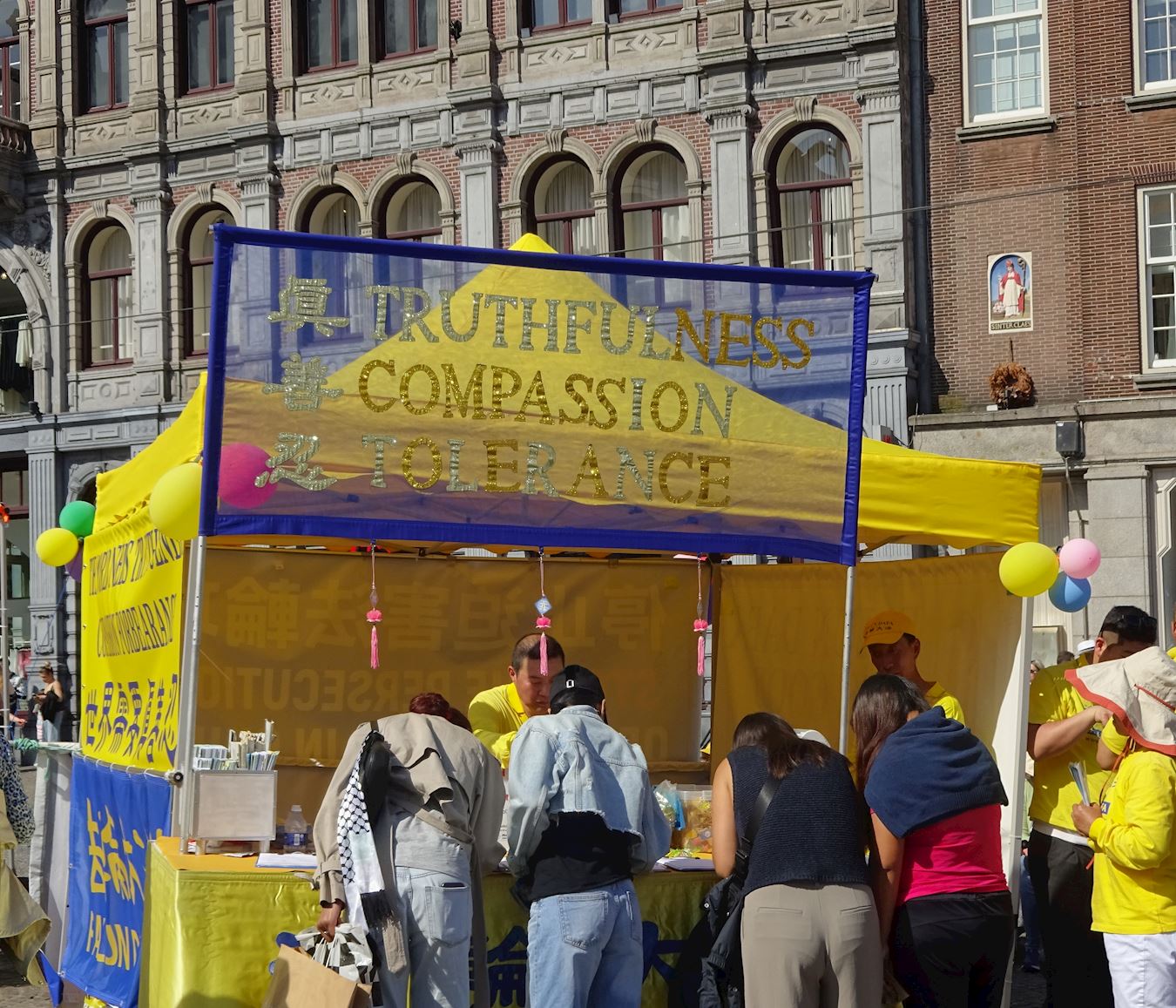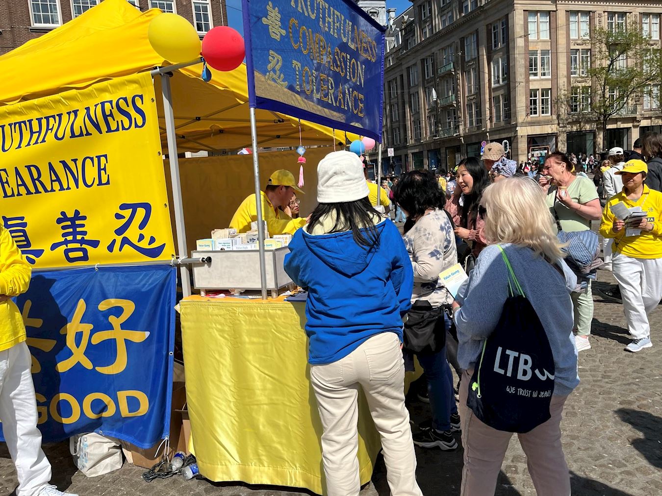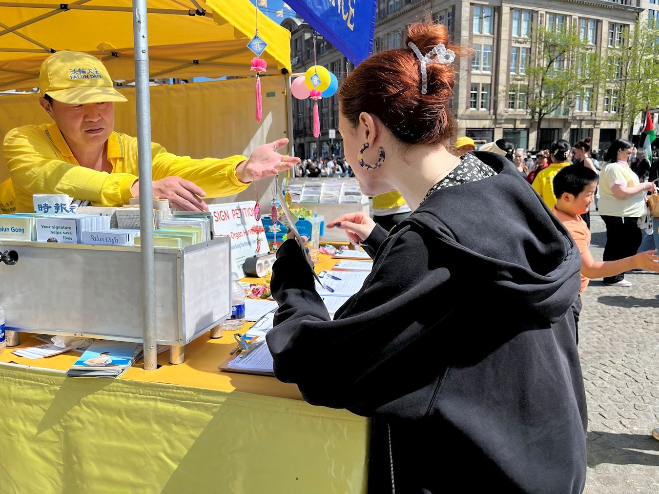 有一位从大陆东北到美国不久的女士说:“我刚刚路过这里看到你们举办歌舞表演,因为有事没看多久,我现在专门回来看。因为在中国不让炼法轮功,我想知道是怎么回事,法轮功是什么?”法轮功学员马上给她一些有关的真相资料,并为她讲了法轮功真相,她非常愿意接受。