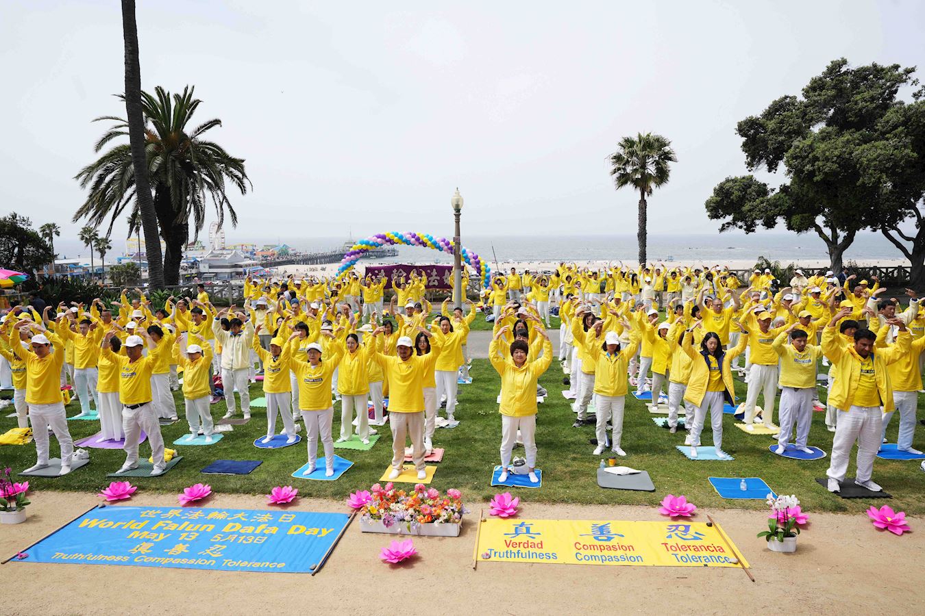 【明慧网二零二四年五月十八日】二零二四年五月十二日,美国洛杉矶法轮功学员在旅游胜地圣莫妮卡(Santa Monica)海滩举行盛大欢庆活动。今年的五月十三日是法轮大法弘传三十二周年纪念日,也是第二十五届世界法轮大法日暨法轮功创始人李洪志大师华诞。