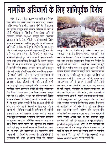 <英文版: https://en.minghui.org/html/articles/2024/5/1/216837.html>印度25家媒体报道法轮功“四·二五”和平上访
