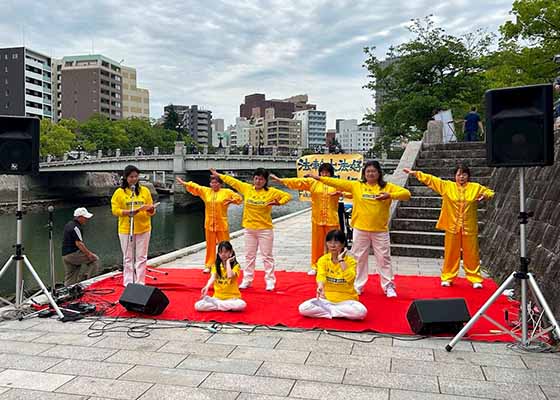 五月十九日,日本广岛法轮功学员应邀参加了在广岛原爆遗址河对岸举办的水滨音乐会。现场观众受到鼓舞并深受感动。