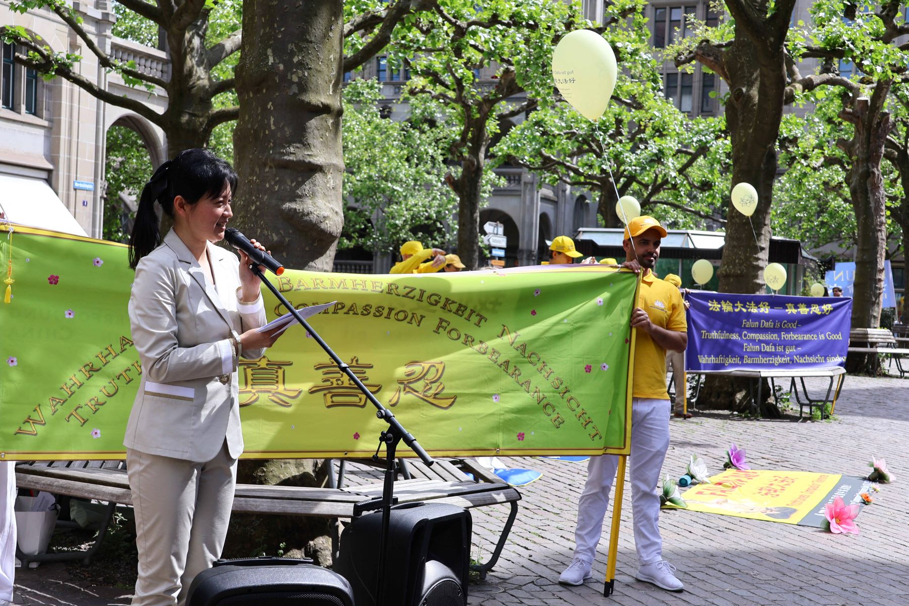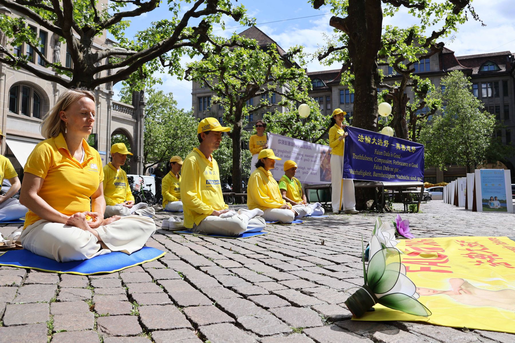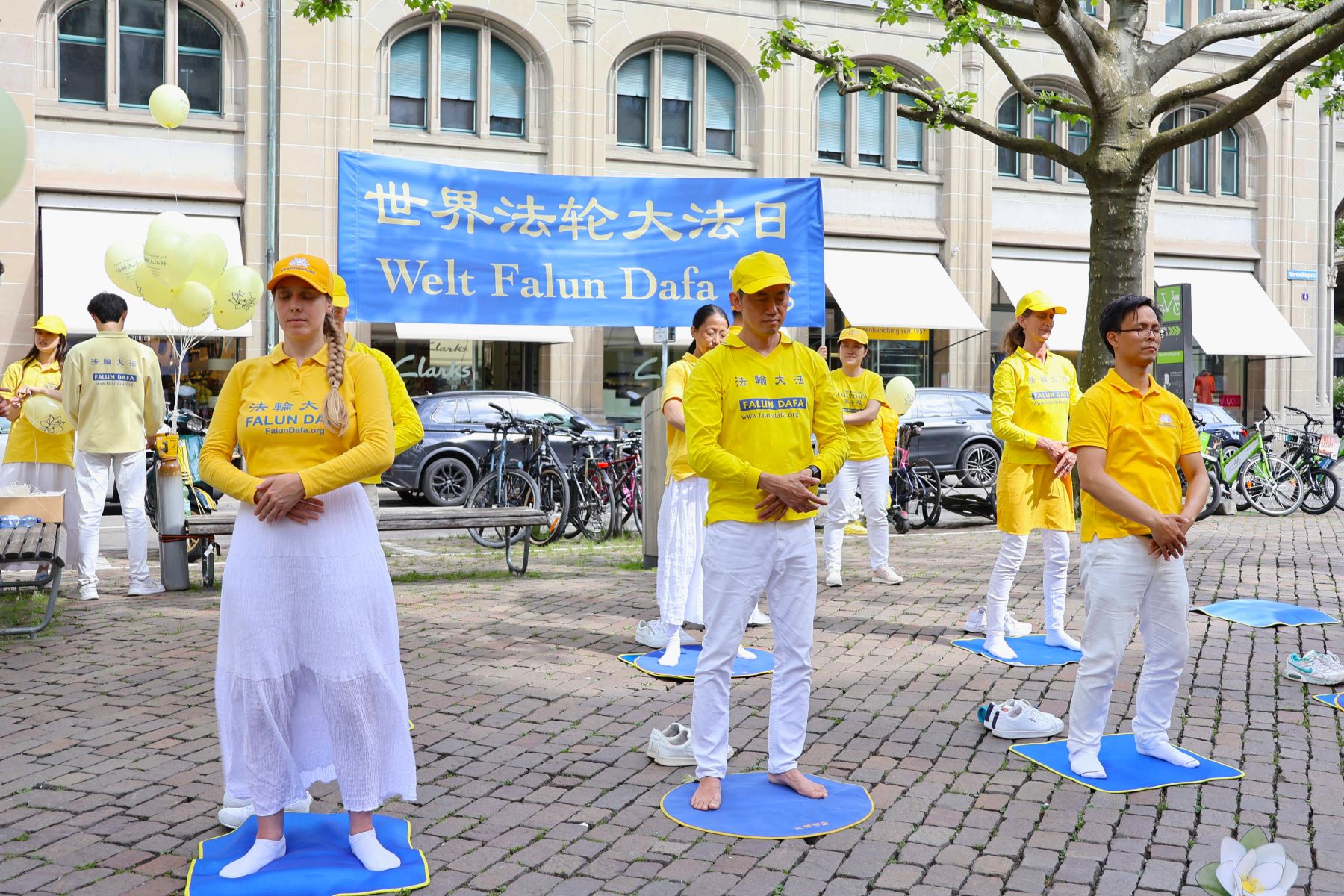 ![]() 图1:二零二四年五月十八日,瑞士法轮功学员在苏黎世班霍夫大街附近的维尔德米勒广场(Werdmühleplatz)庆祝世界法轮大法日,暨法轮大法弘传三十二周年。 |