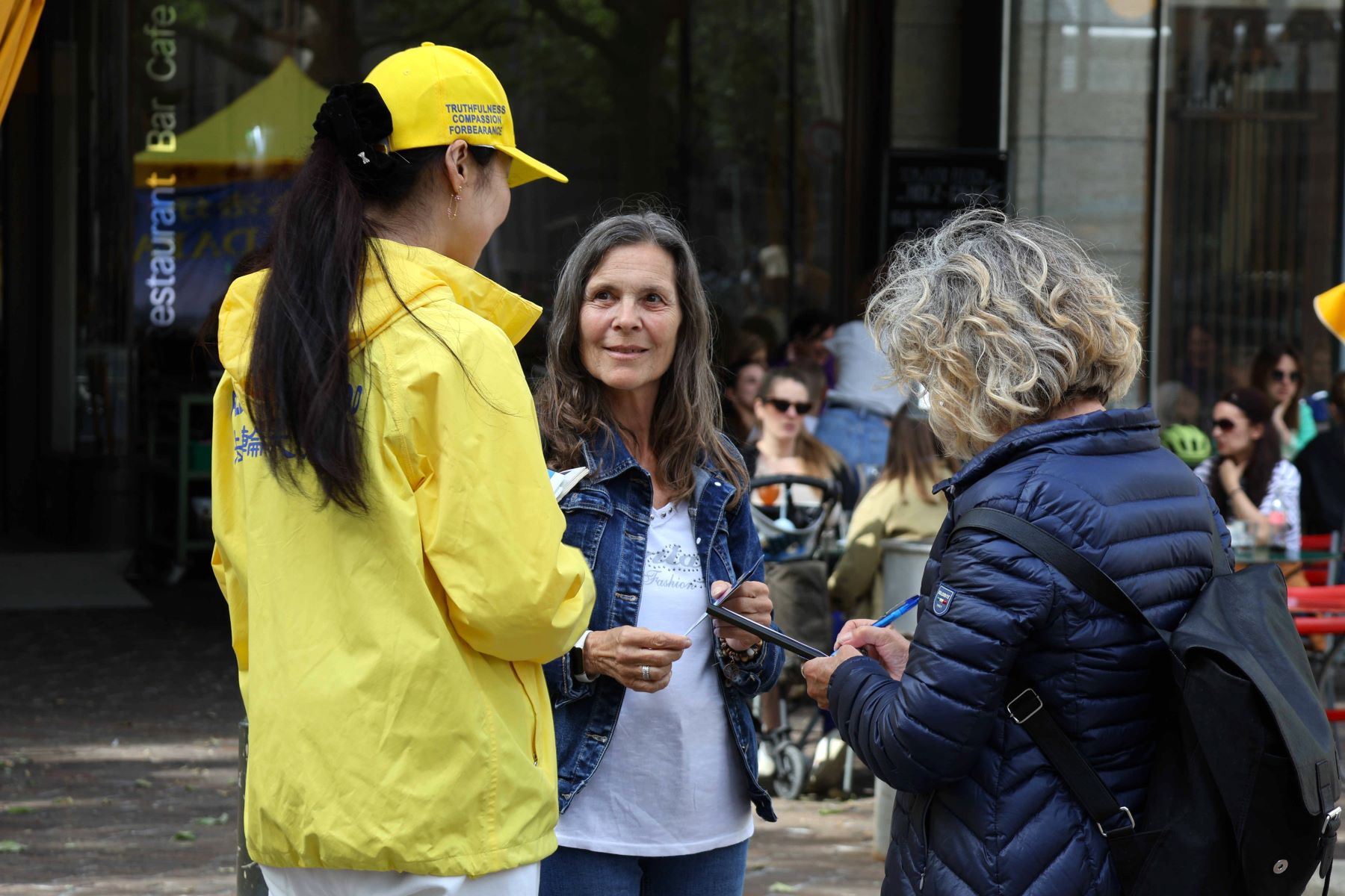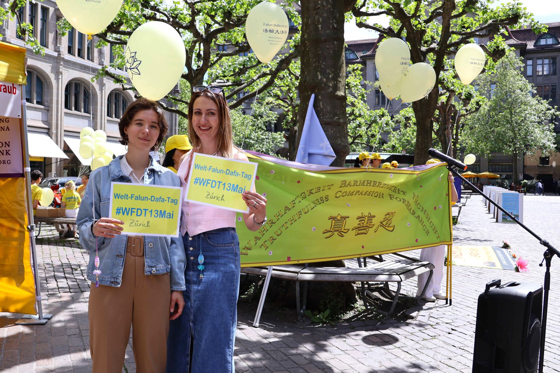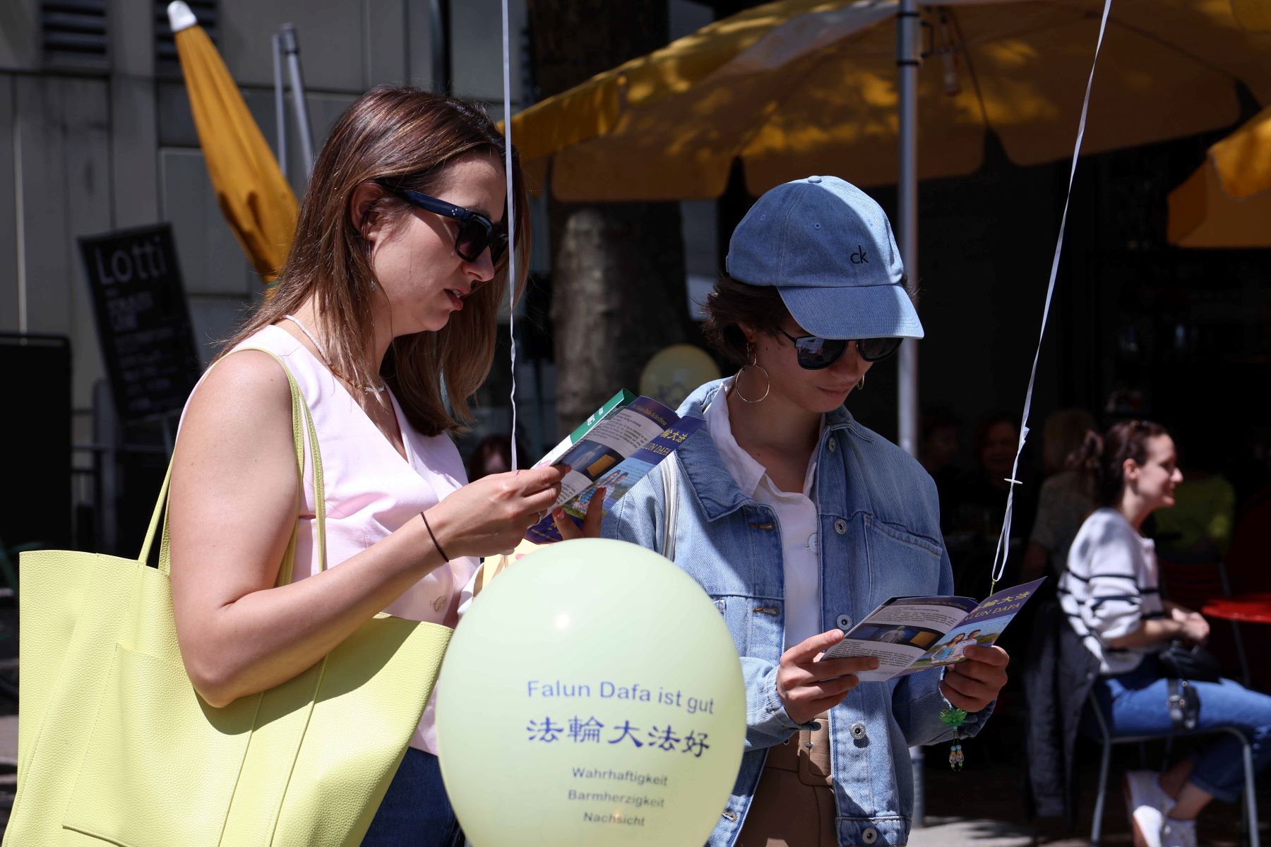 从事IT工作的芙拉达·卡普伦(Vlada Kaplun)和幼儿教师达莉娅·韦奇(Daria Vetsch)结伴从格劳宾登州来苏黎世。接过气球和真相传单后,她们立即开始阅读,并向学员询问更多讯息。